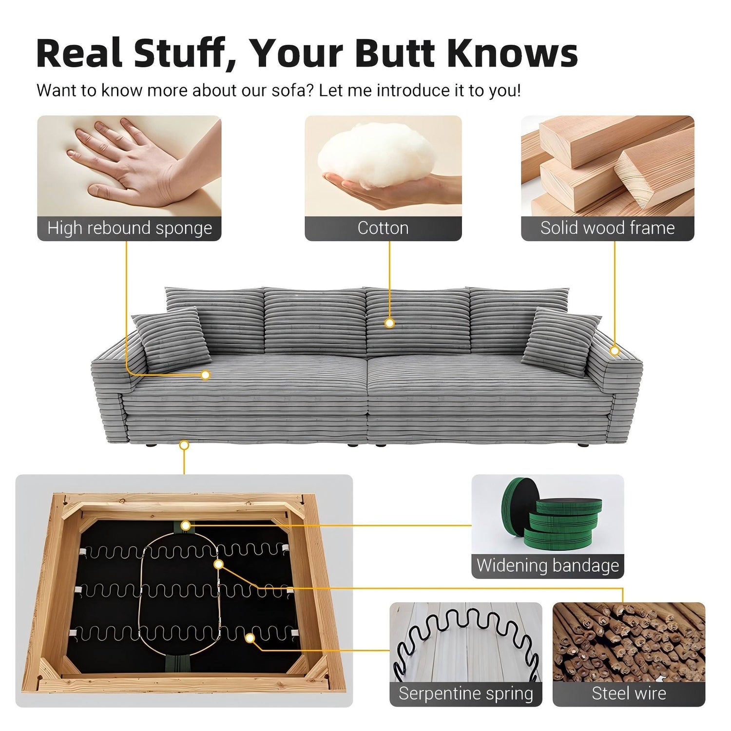 NEW 102.4' Grey Corduroy 4-Seat Comfy Upholstered Modern Plush Sofa