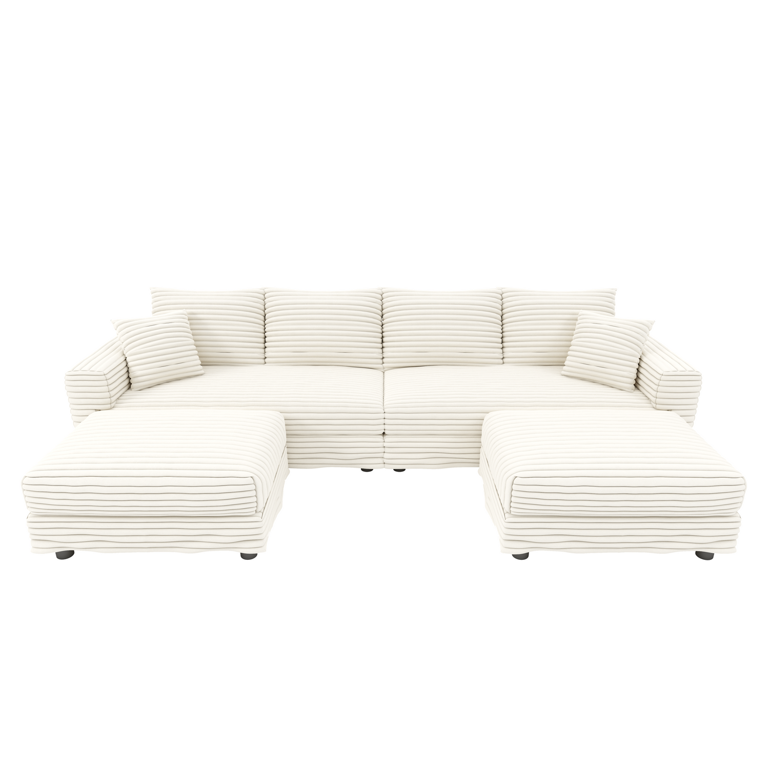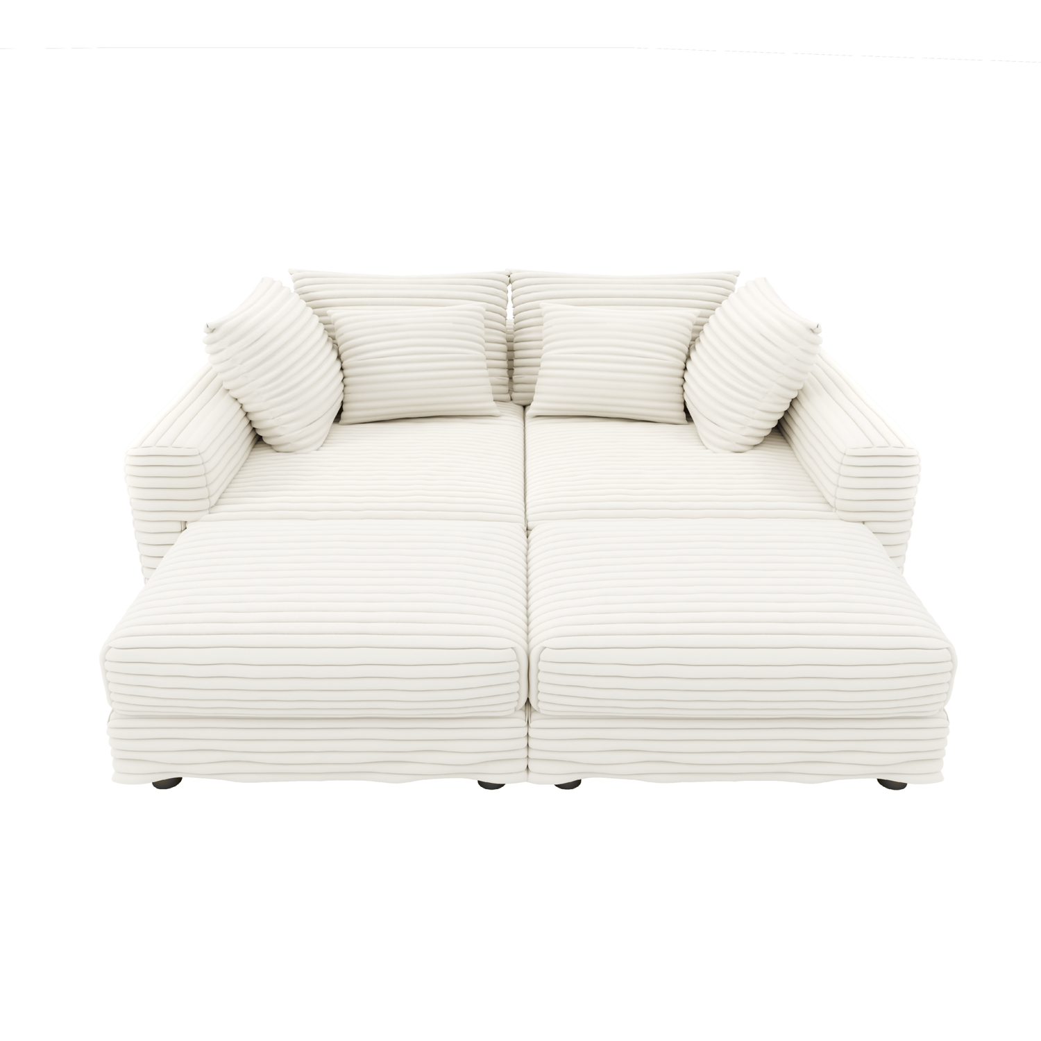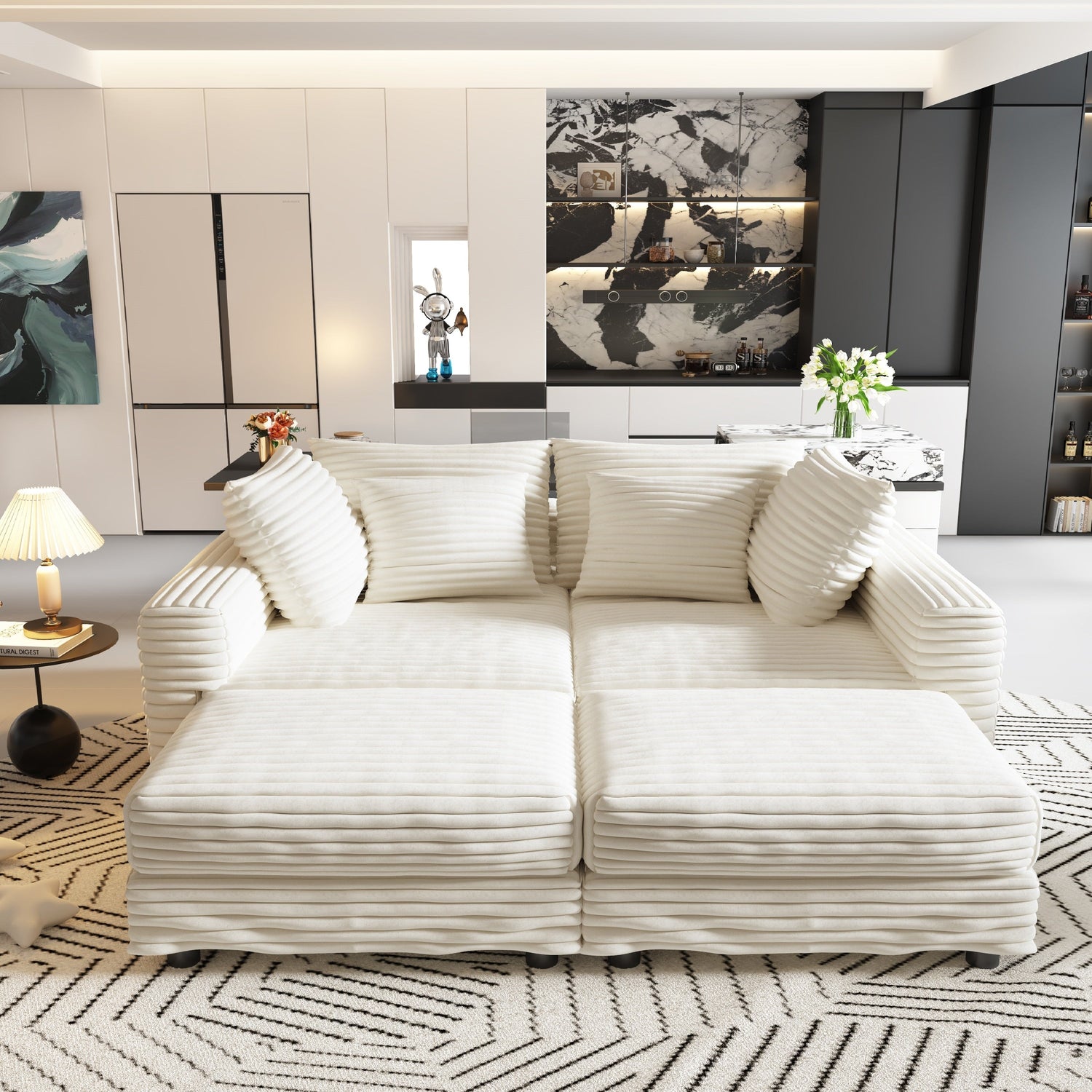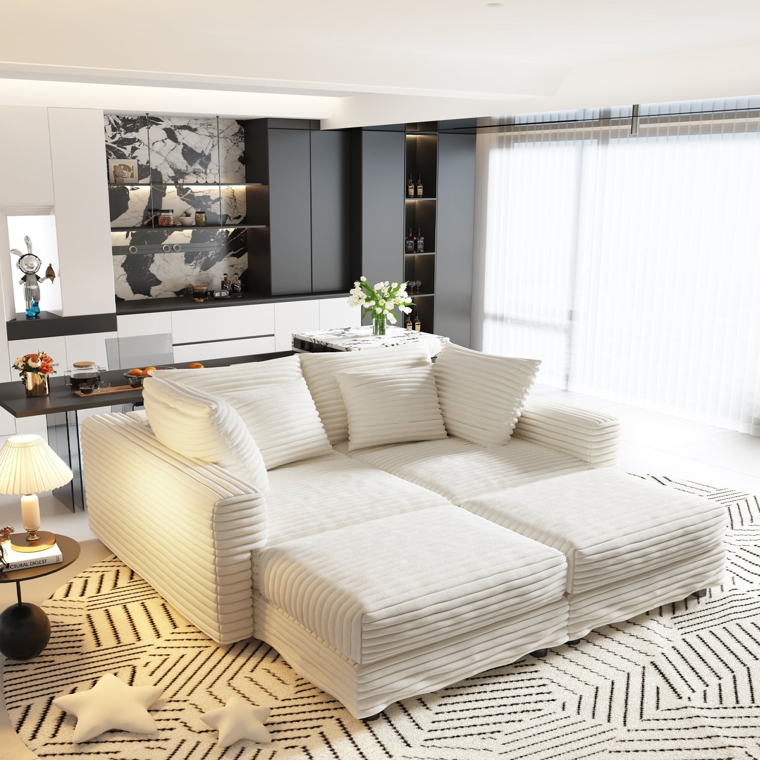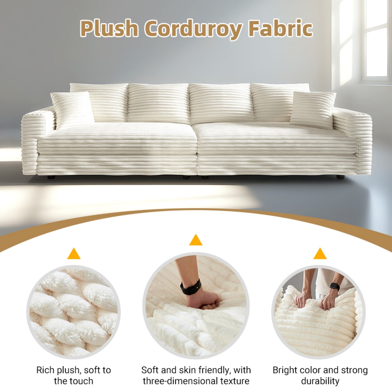 NEW 104.3' Modern 4-Seat Beige Comfy Upholstered Plush Corduroy Sofa