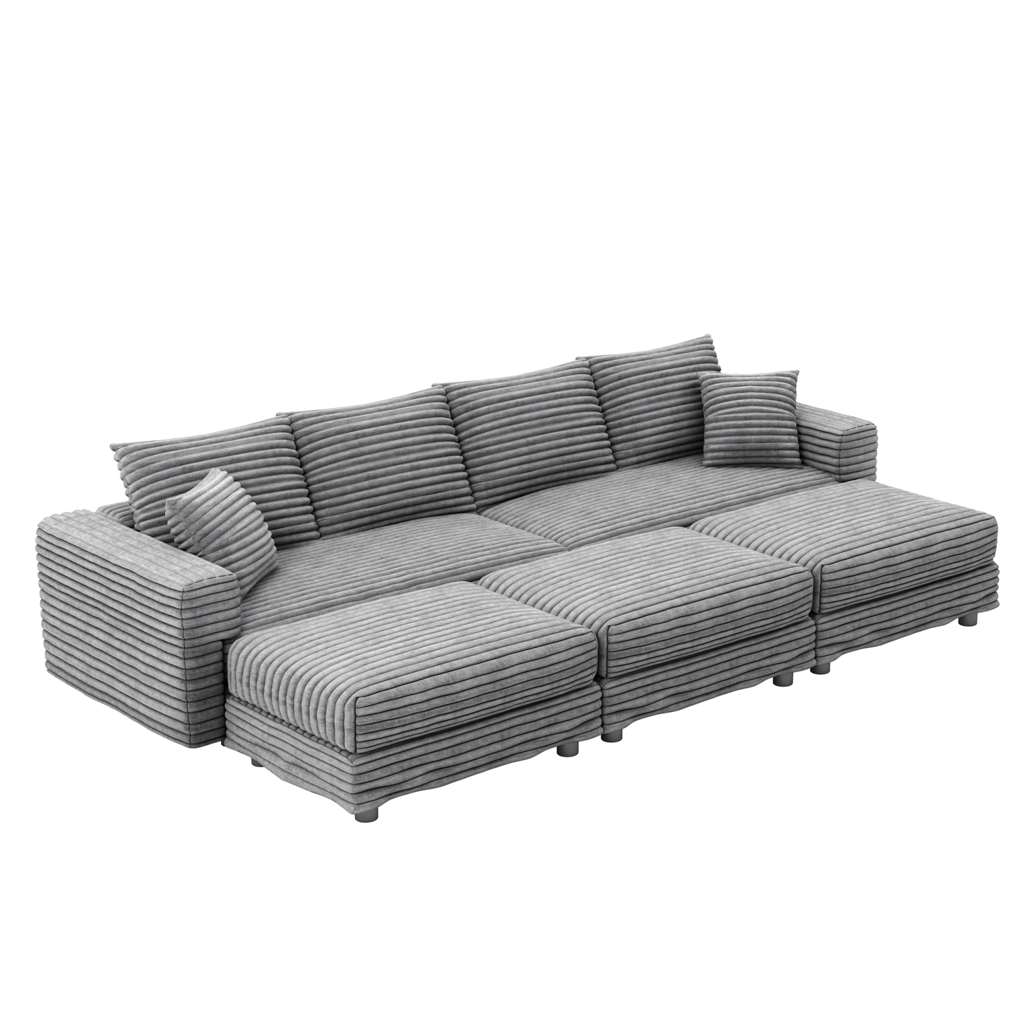 NEW 104.3' Plush Grey Corduroy Modern Comfy Upholstered 4-Seat Comfy Deep Seat Sofa Cloud Couch with Soft Pillows and 3 Ottomans Convertible Lounge Char