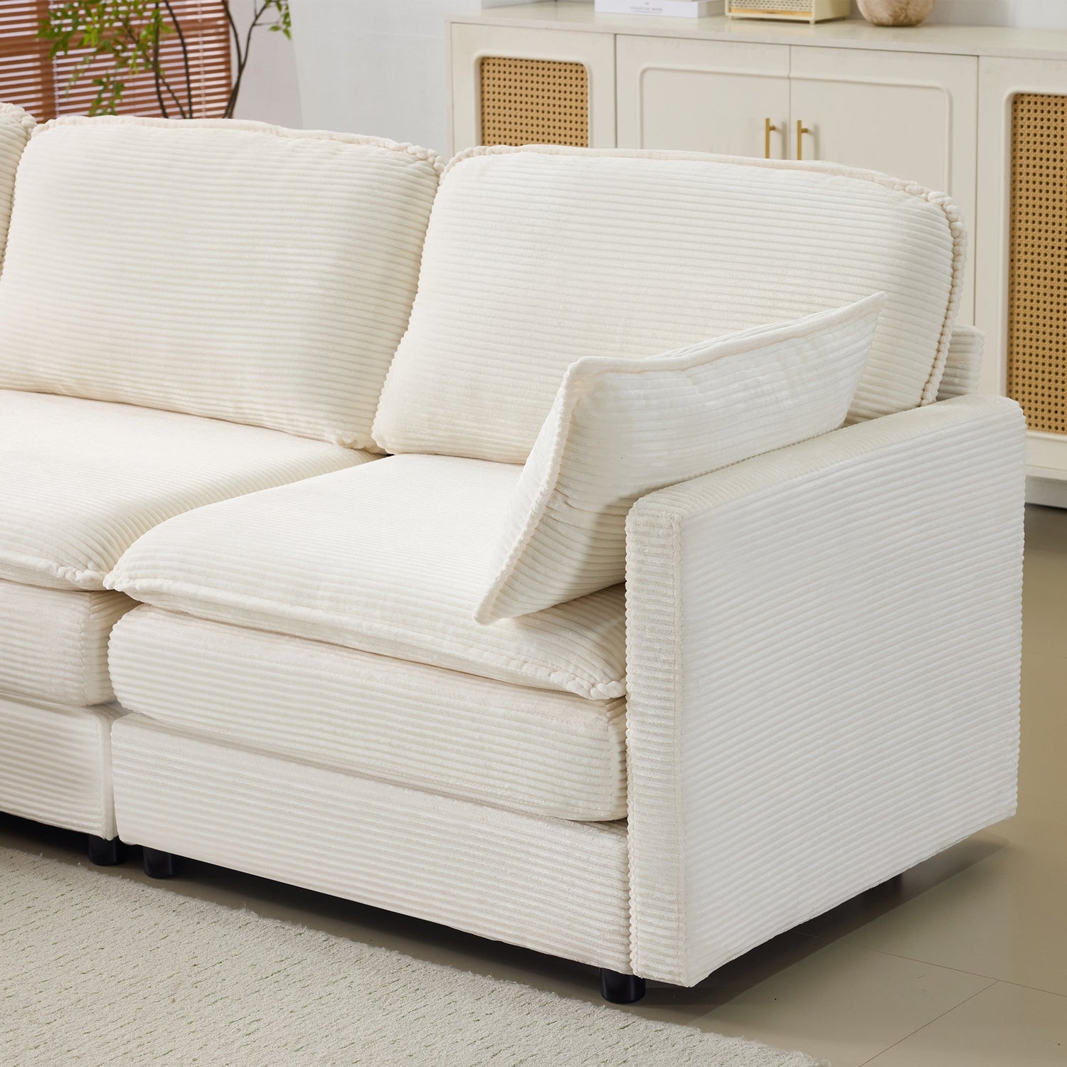 - Cloud Comfort Sofa: Experience unparalleled relaxation with our modular sofa, masterfully blending contemporary style with cloud-like comfort. Draped in sumptuously soft, breathable corduroy and featuring a high-resilience foam core, it cradles you in sublime support. Perfect for binge-watching sessions or unwinding after a demanding day. Its sleek, versatile silhouette effortlessly complements any decor, making it the perfect addition to living rooms, bedrooms, and home studios.