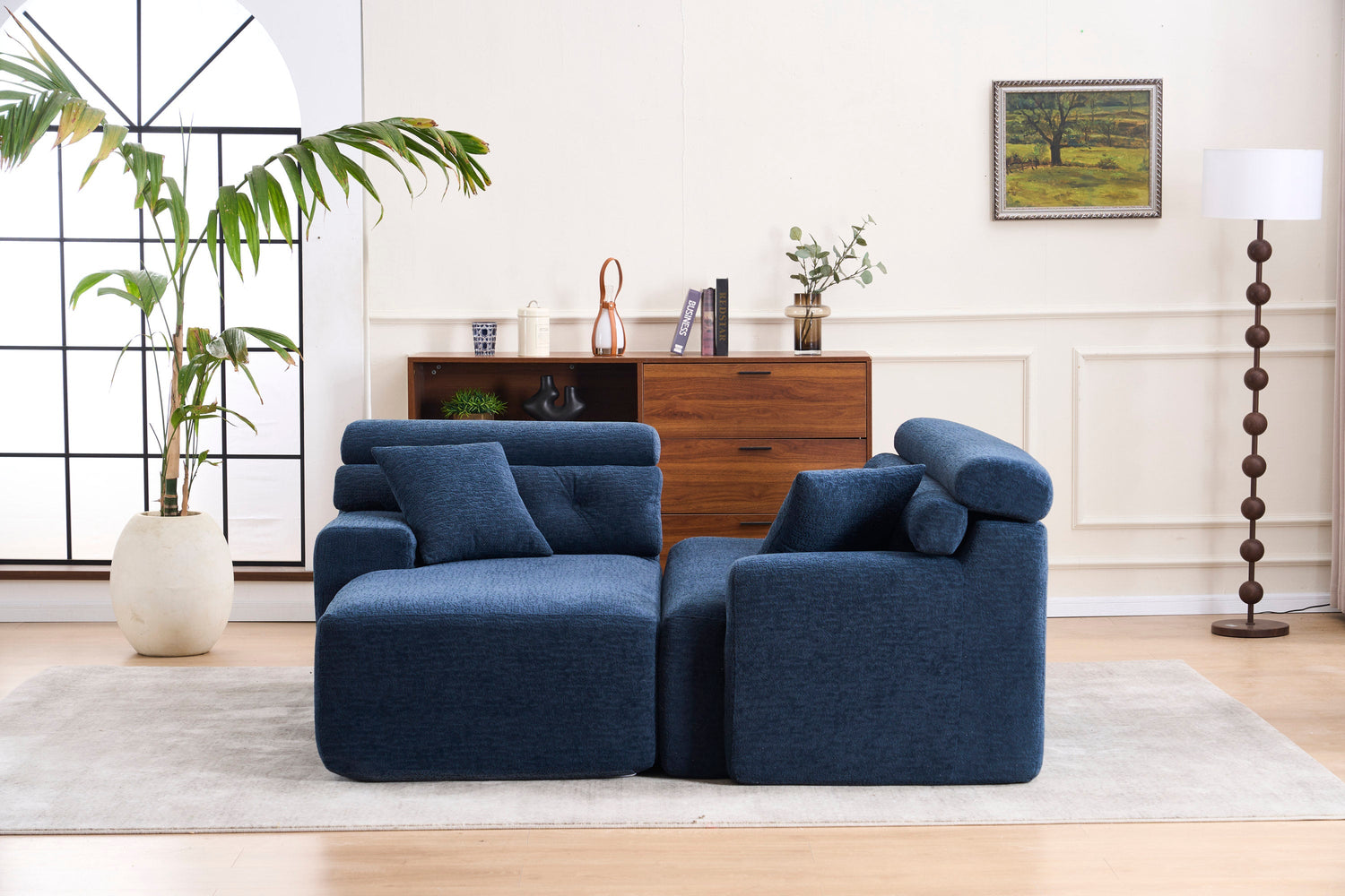 - Compression Sofa with wider armrests, deeper seat depth, and raised backrest provide a more comfortable seating experience. The 2 small pillows included for free can be cradled in your arms or leaned against your back, allowing you and your family to relax even more. The super wide sofa gives every part of your body plenty of space to relax.