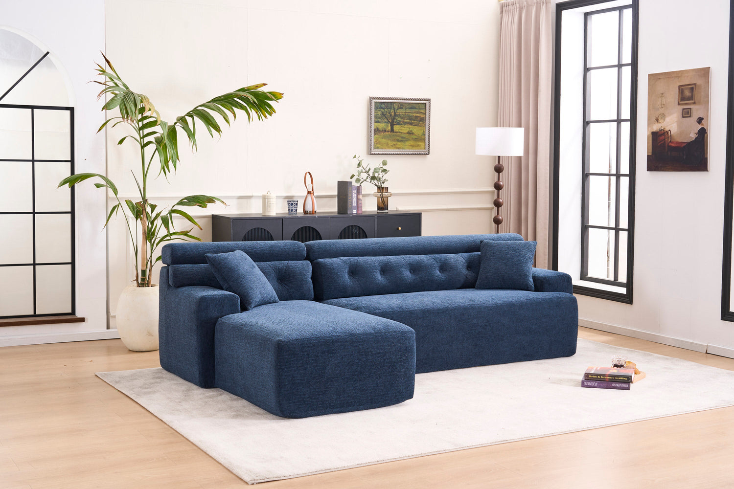 NEW 105'' Blue Cloud Sectional Couch with L-Shape Chaise Modern Modular Deep Seat Boneless Sofa