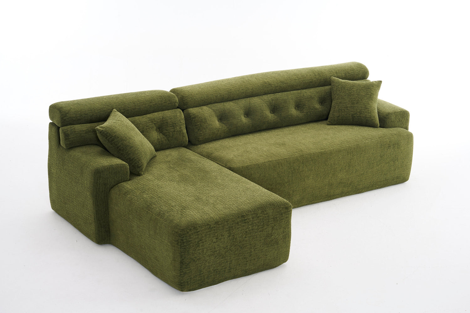 NEW 105' Modula Compression Sponge L-Shaped, Chesterfield-Inspired Design, No-Assembly Chenille Couch, 30D High-Density for Living Room, Bedroom, Apartment.Green.