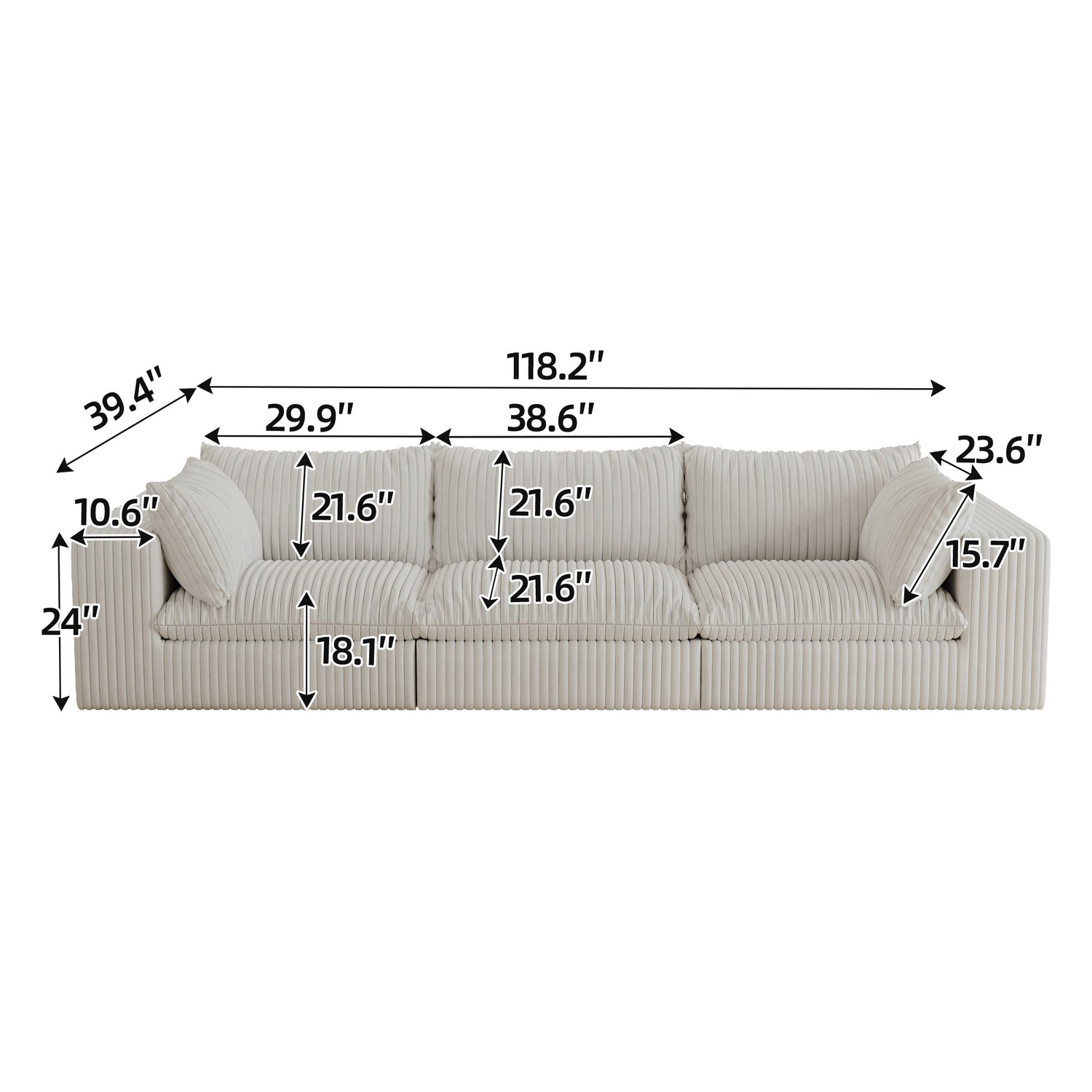 NEW 118.2' Cloud Corduroy Fabric Deep Seat Couch Deep Seat Removable Cushion Sofa