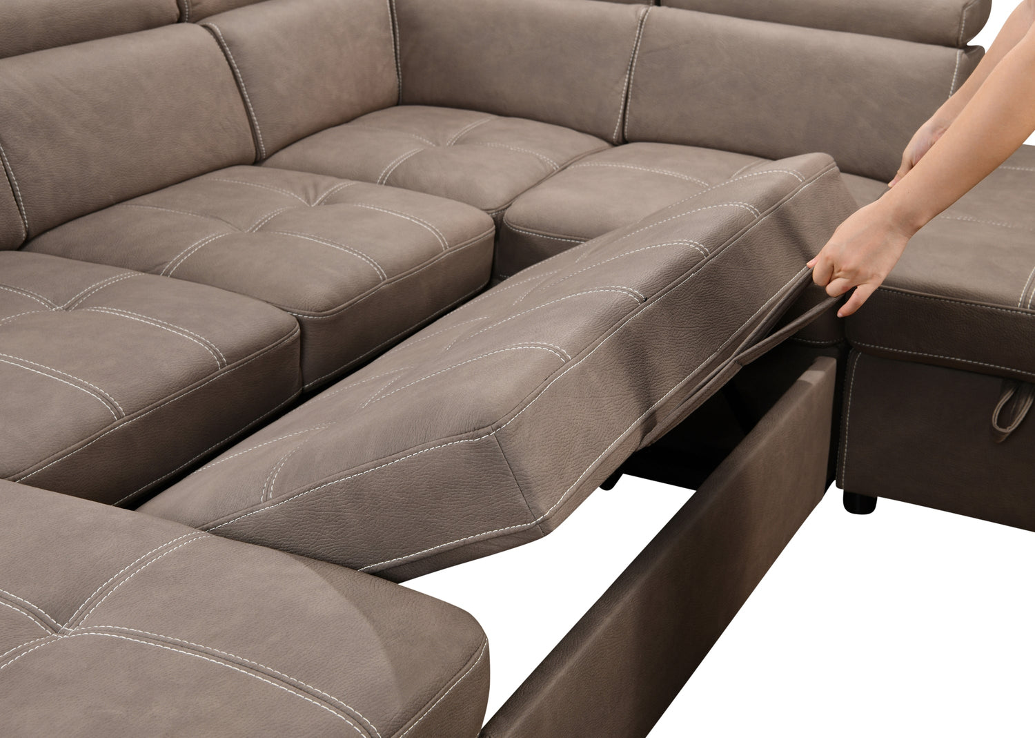 This sofa is not only a comfortable seating solution but also a functional piece of furniture. It features a pull-out bed, providing additional sleeping space for guests. Additionally, it has 2 convenient storage chaises, ideal for keeping essentials organized.