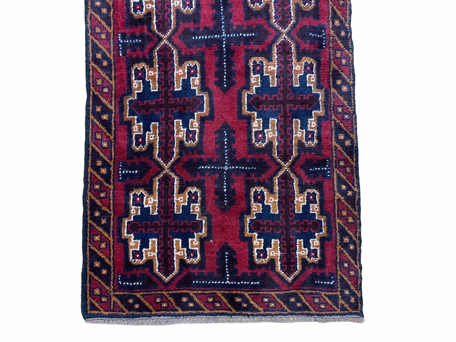 USED 2' 7" X 4' 6" Vintage Handmade Tribal Wool Rug Balouchi Rug Afghan Rug Red Blue