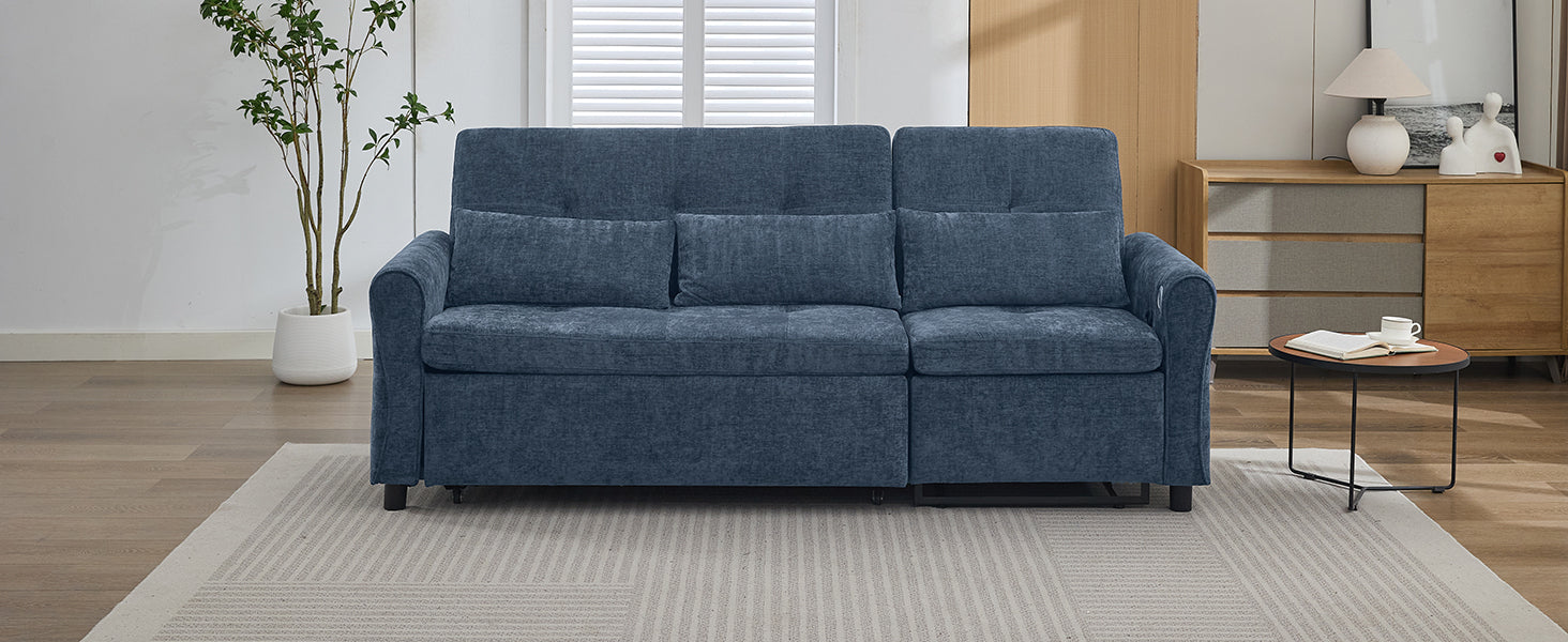 NEW 2-in-1 Sofa 82' Three-seater Sofa with Sofa Bed and Reversible Recliner, Blue Chenille