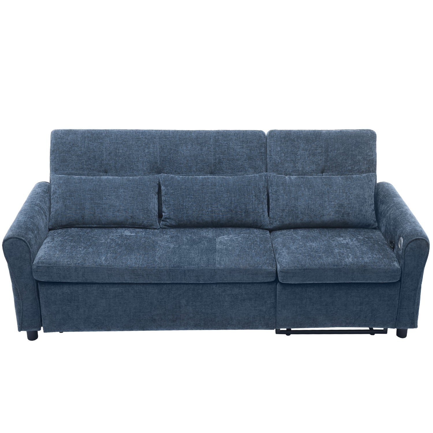 This innovative 2-in-1 sofa combines the best of both worlds — a spacious pull-out sleeper and a versatile recliner section — making it the perfect solution for modern, multifunctional homes. Designed with three-level adjustable backrests, it offers personalized comfort for every user, whether sitting, lounging, or napping. The reversible recliner section easily adapts to any room layout, while elegant curved armrests with refined tufted details add a touch of sophistication to your space. Equipped with dual USB charging ports, this sofa not only elevates your décor but also keeps you conveniently connected, making it an ideal choice for busy, tech-savvy households.