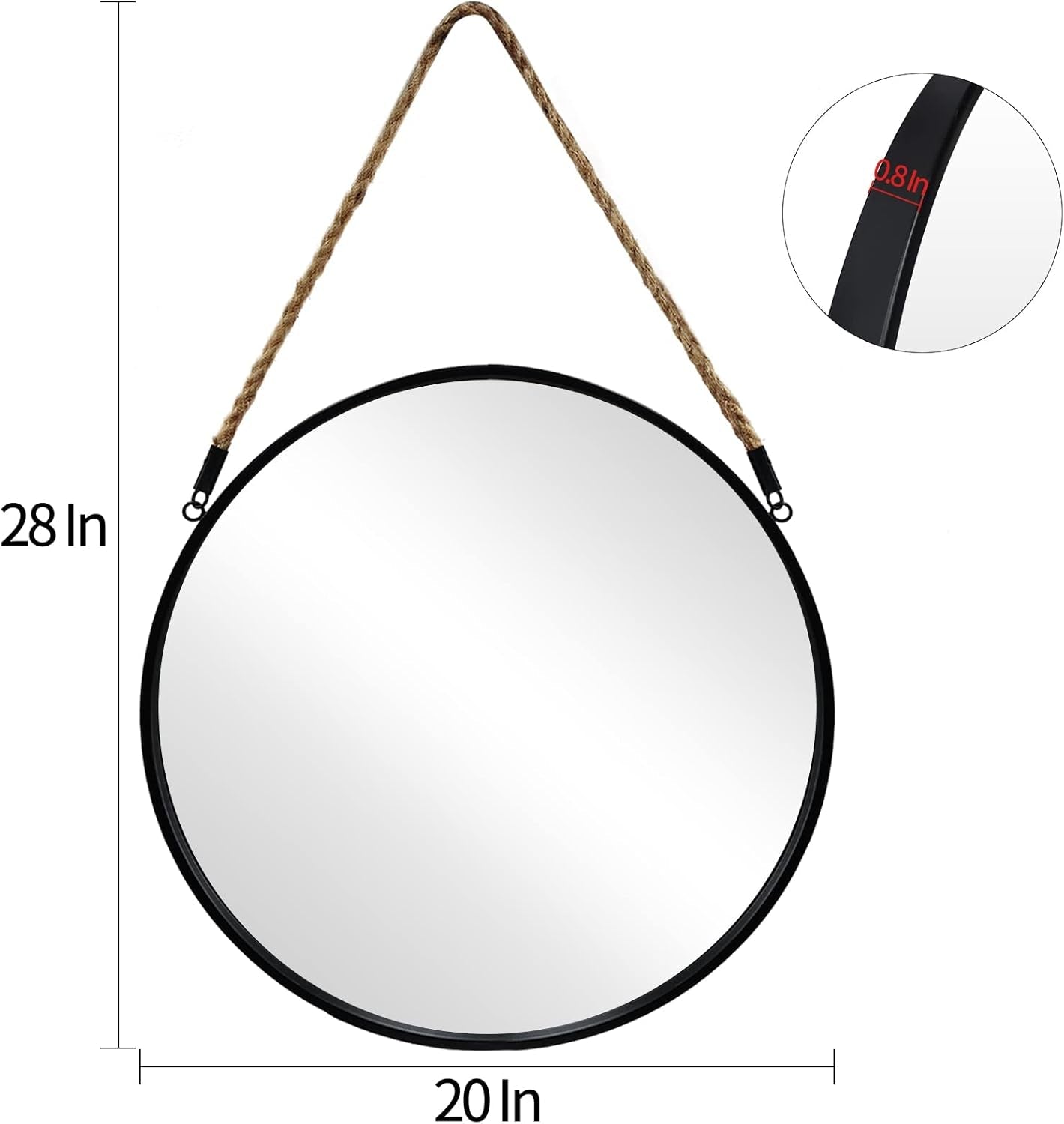 Transform your wall with a round hanging mirror that blends farmhouse warmth with modern clarity. This 20-inch round glass sits in a sturdy black metal frame, wrapped with a retro linen rope for a timeless, artisanal look that suits any room.