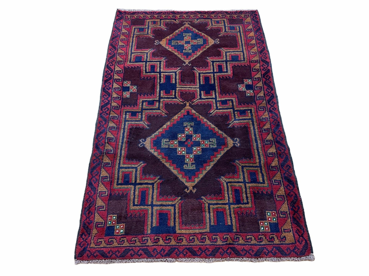 USED 2'11" X 4'6" Vintage Handmade Tribal Wool Rug Balouchi Rug Afghan Rug Geometric