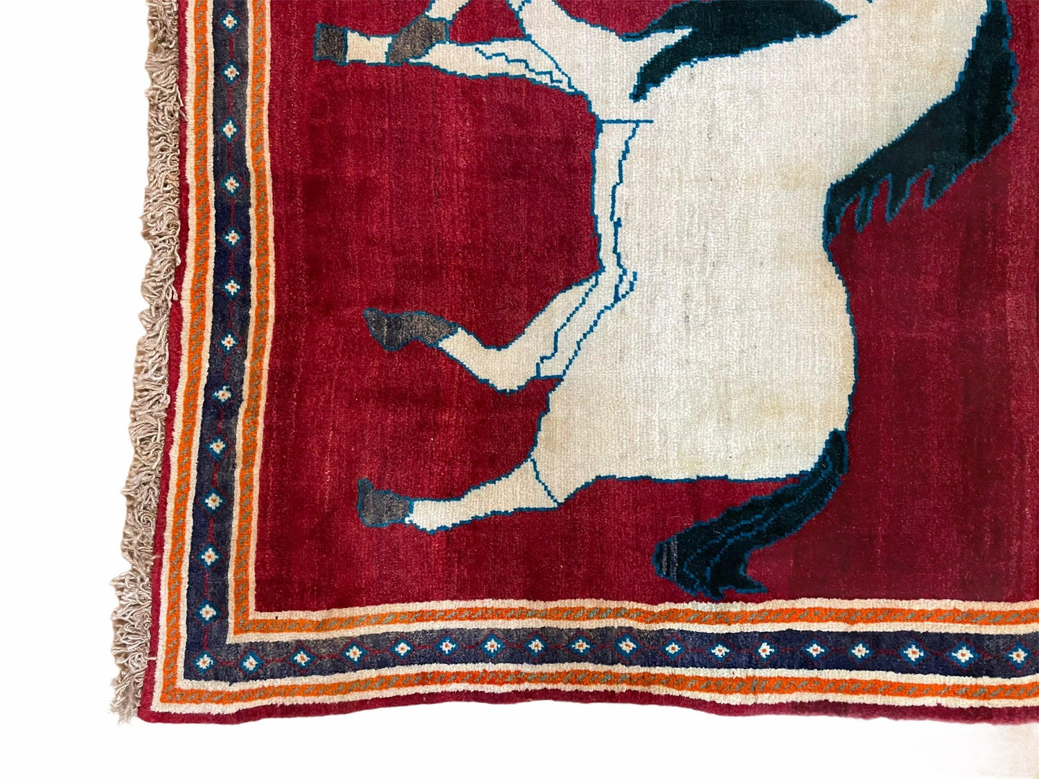 | Condition/Notes | Great condition Handmade rug with design of two white Horses. All natural based organic dyes. |