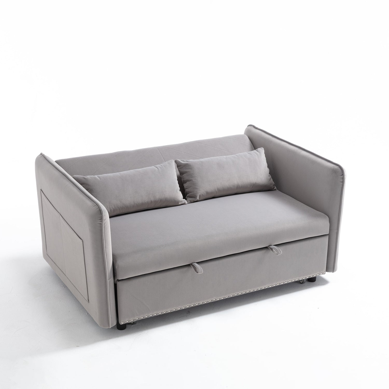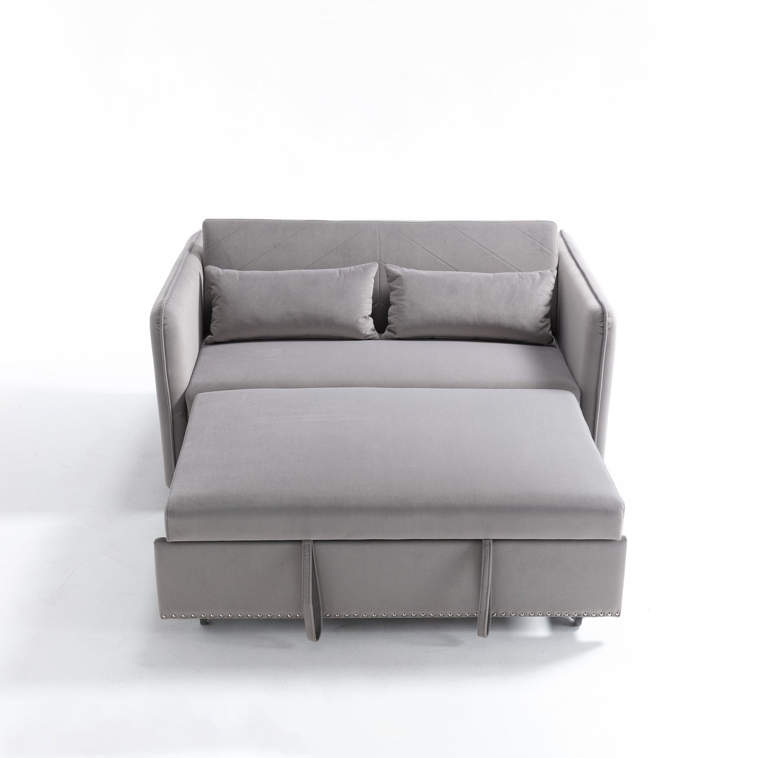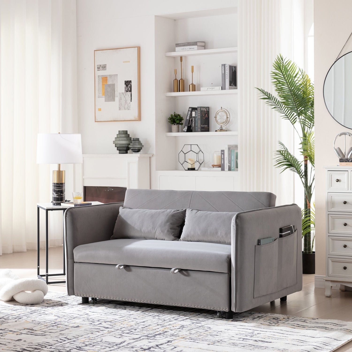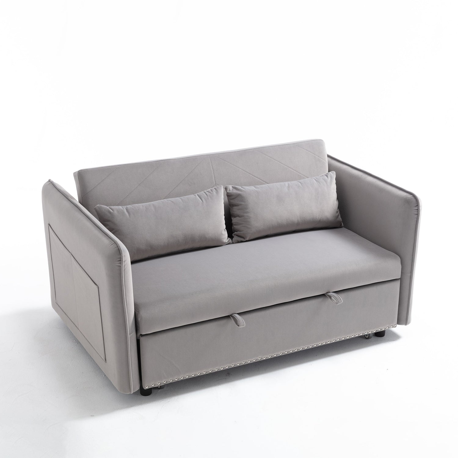 NEW 3 in 1 Pull-Out Convertible Sleeper Futon Sofa Bed 55' Velvet Small Loveseat Lounge Couch with 2 Pillows Reclining Backrest and Side Pockets