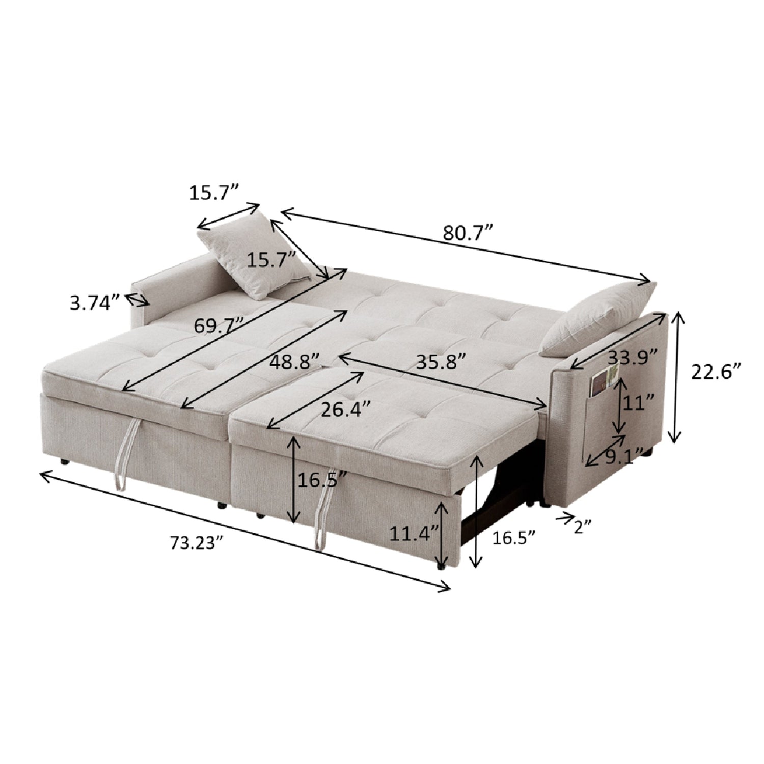 NEW Beige Fabric 3 Seat Pull-out Double Sleeper Sofa Couch with Storage Armrest