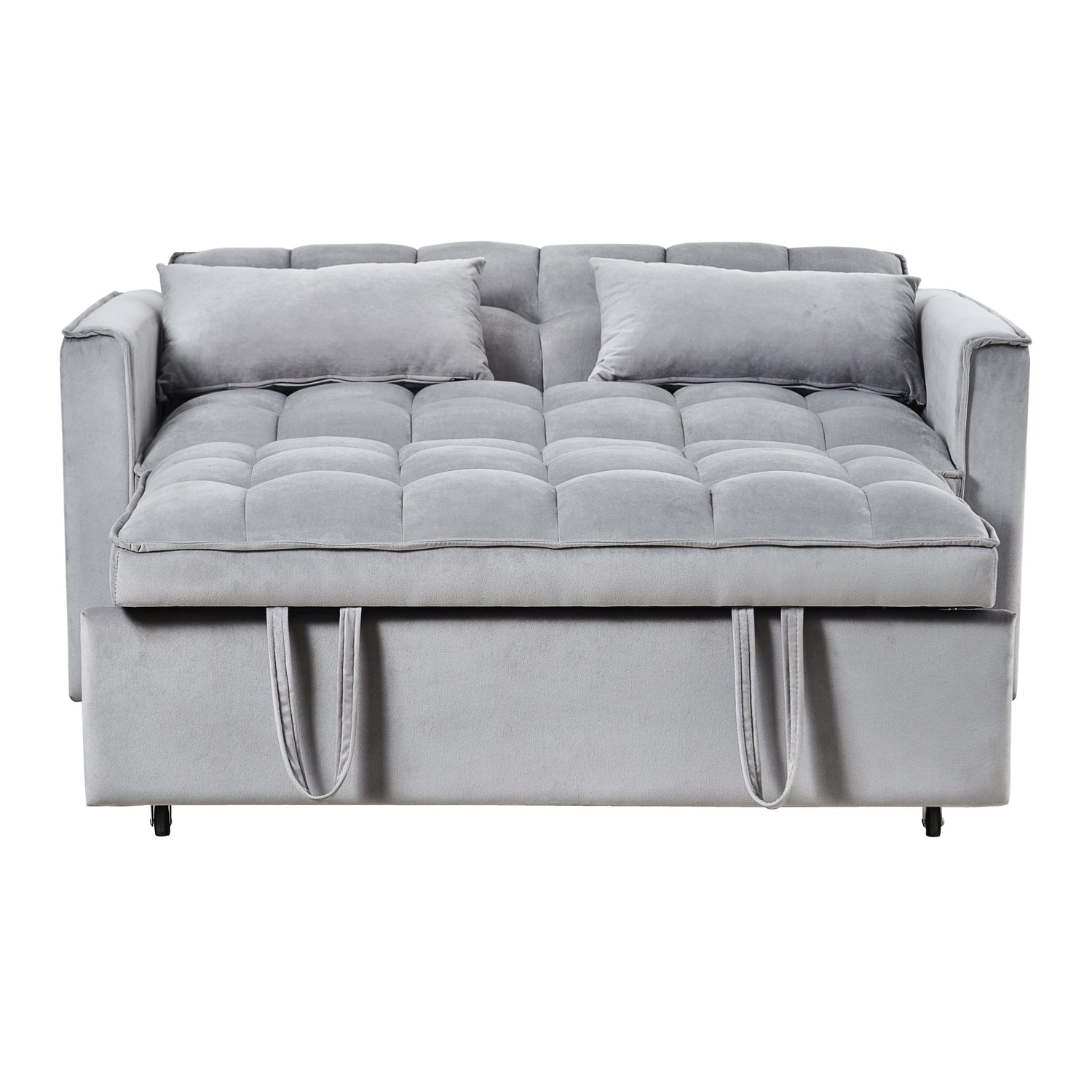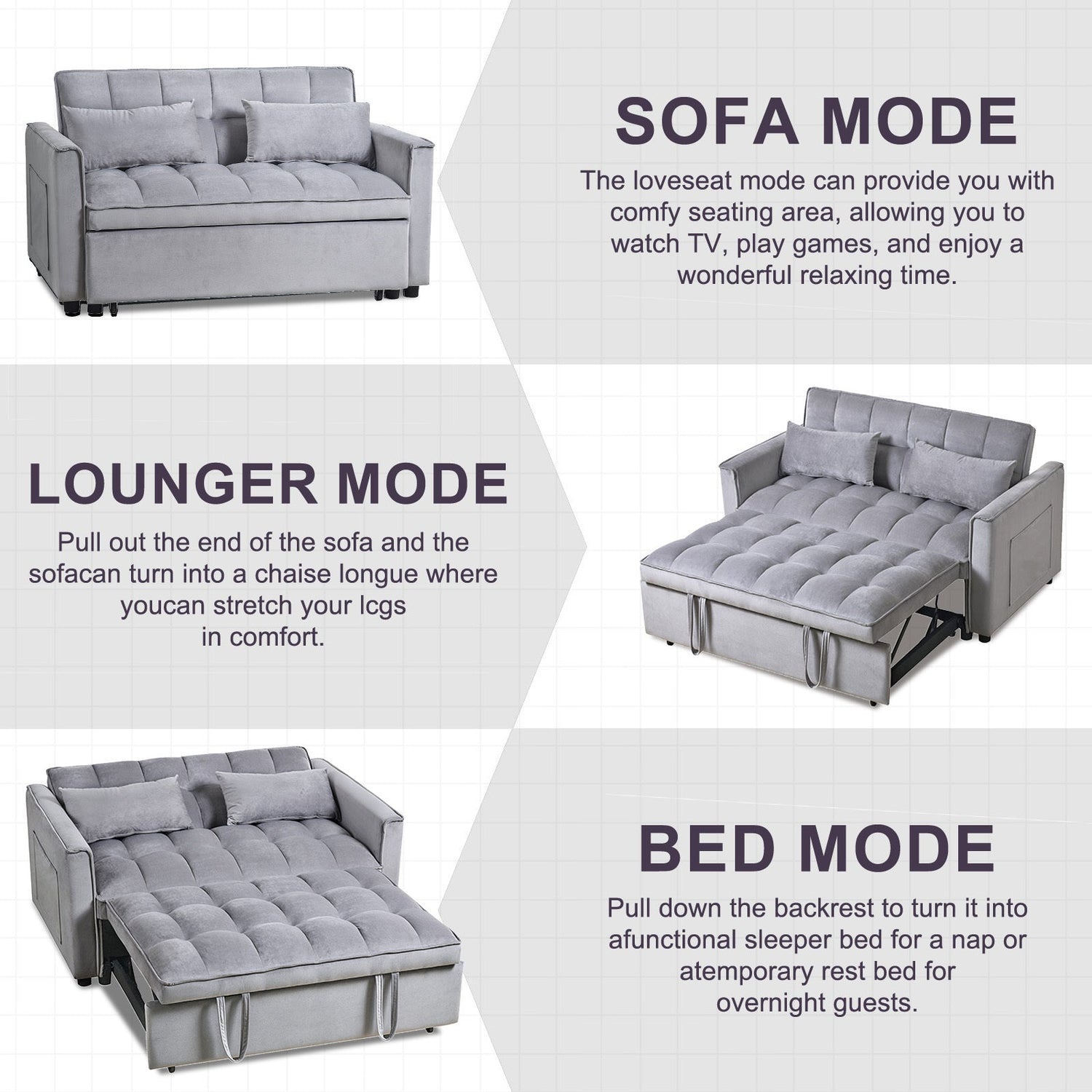 NEW 3 in 1 Convertible Sleeper Sofa Bed, Modern Pull Out Couch Bed, Adjustable Backrest, Velvet Loveseat Futon Sofa with Pillows & Pockets for Living Room Apartment, Grey
