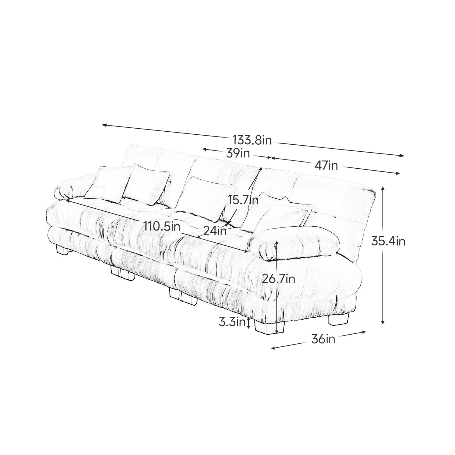 - Sitting on a cloud - The cloud look seat cushions have no spring or wood inside them, yet they offer outstanding support and elasticity for your body. The deep seat design provides additional support and ensures comfort for your waist. Moreover, the throw pillows and waist pillows are included to give you extra support as well. When you sit on it, you can immediately feel how well the dorm couch backrest fits and supports your body, allowing you to enjoy an unparalleled level of comfort.