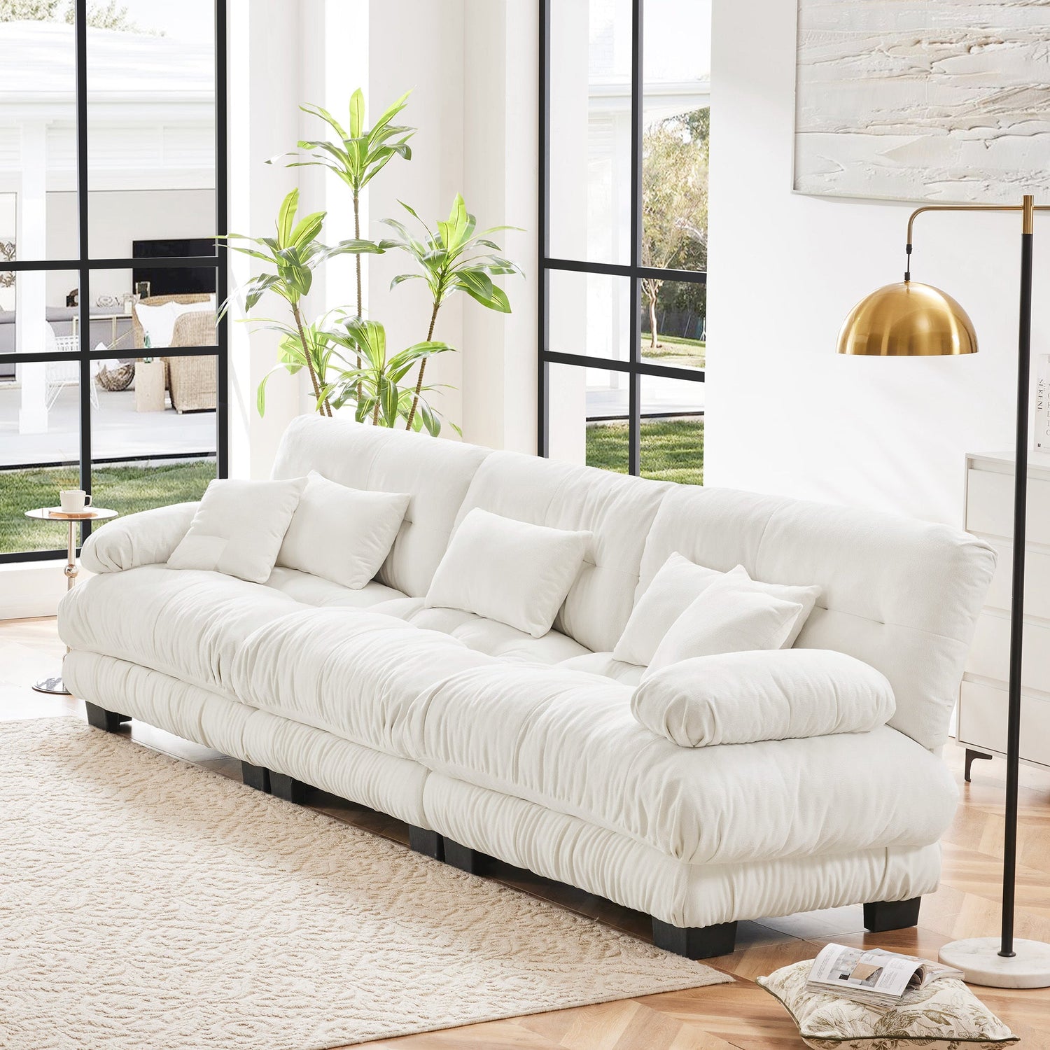 NEW Chenille Soft Comfy White Upholstered 3-Seater Sectional Sofa Modular Deep Seat Sofa Couch