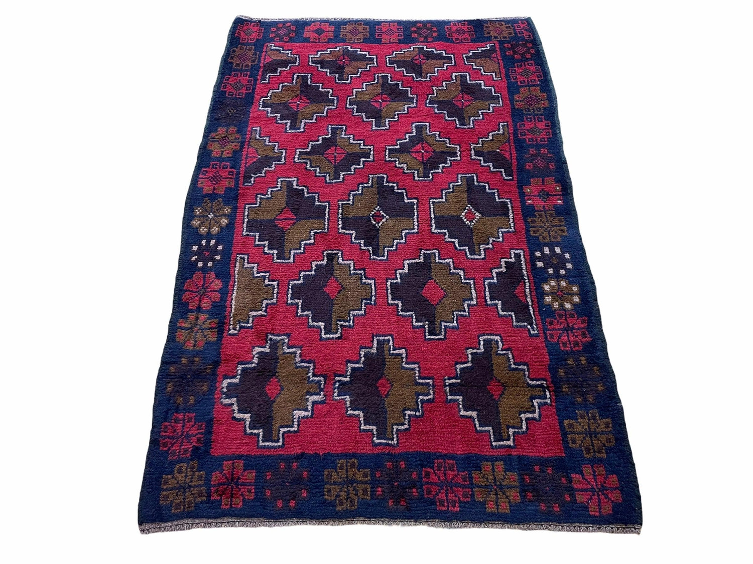 USED 3' X 4' 7" Vintage Handmade Tribal Wool Rug Balouchi Rug Afghan Rug Red Brown