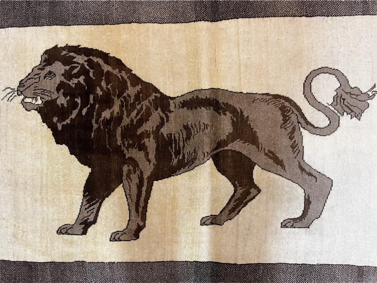 | Condition/Notes | Great condition Handmade Rug with nice design of a charming Lion in a beige background. Made out of fine Zagros Mountain wool. All organic dyes. |