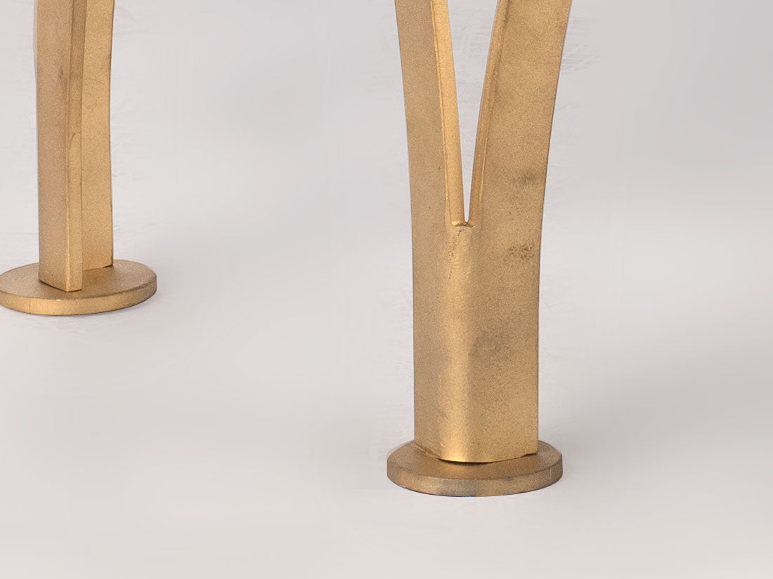 Elevating its charm, the bench stands on Enrico Bartolini's signature steel split leg design, beautifully finished with a matte gold, high-solids paint that exudes sophistication.