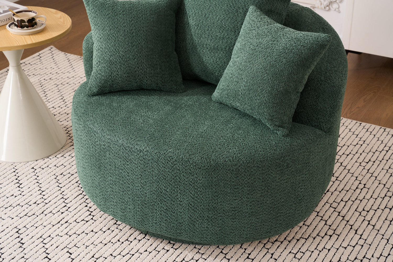 NEW 360° Green Swivel Accent Barrel Round Upholstered Sofa Chair with 3 Removable Pillows