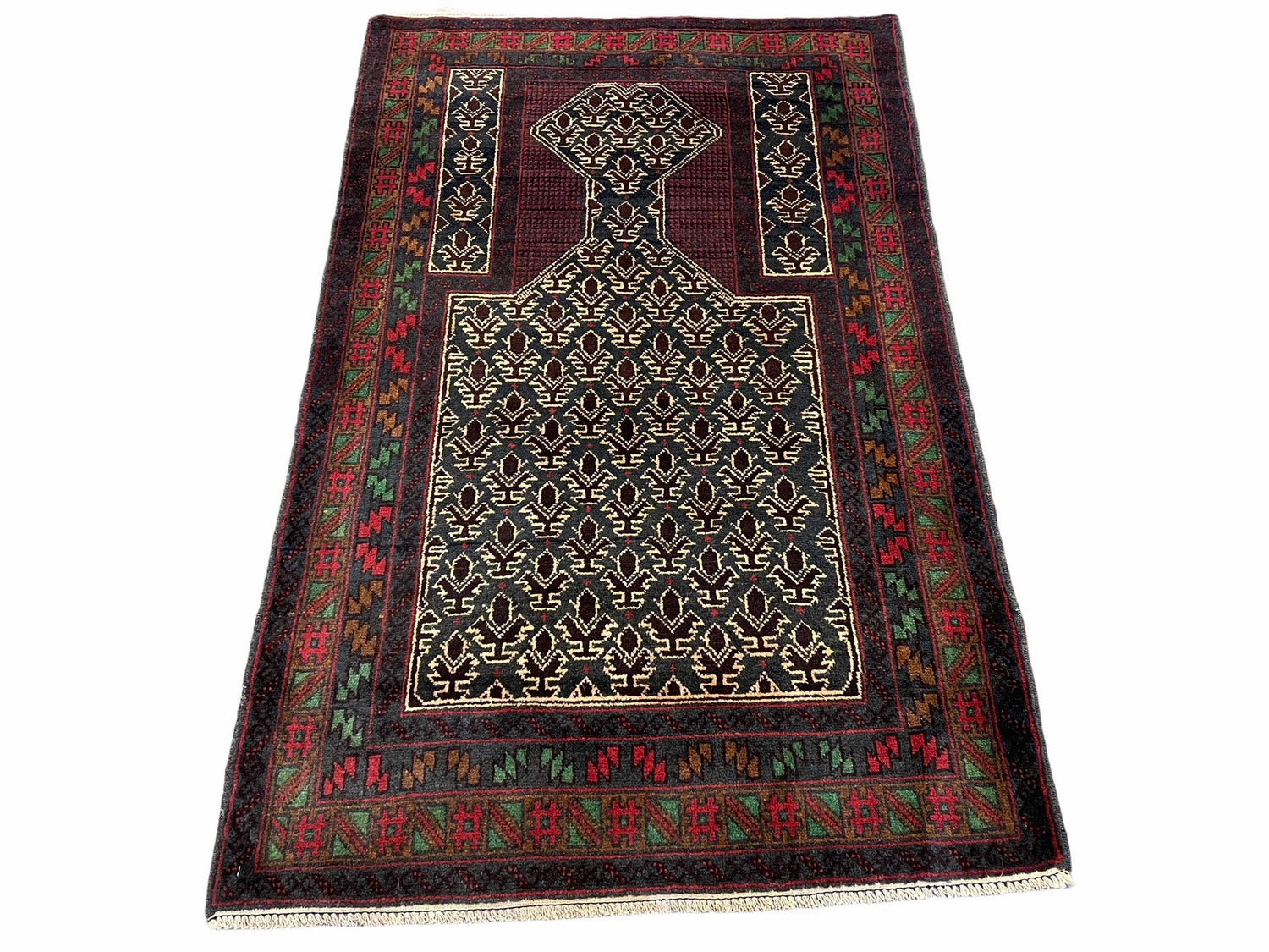 USED 3x5 New Vintage Handmade Wool Rug Tribal Balouch Turkoman Prayer Rug Veggie Dyes