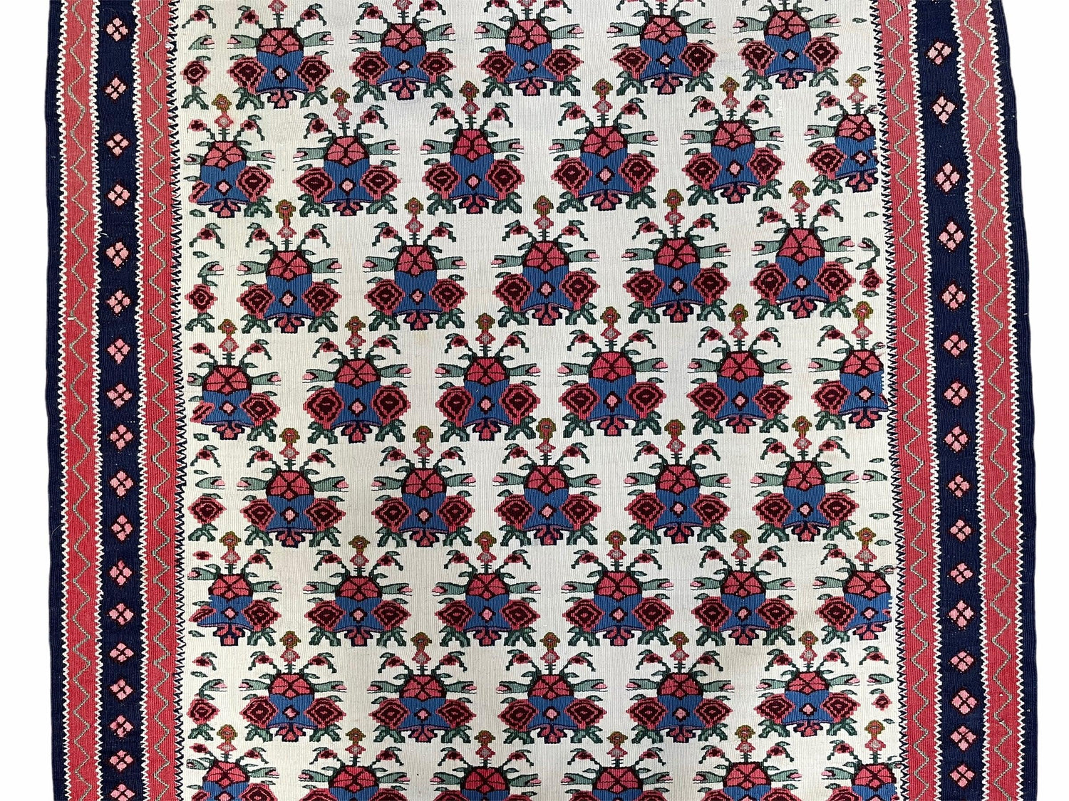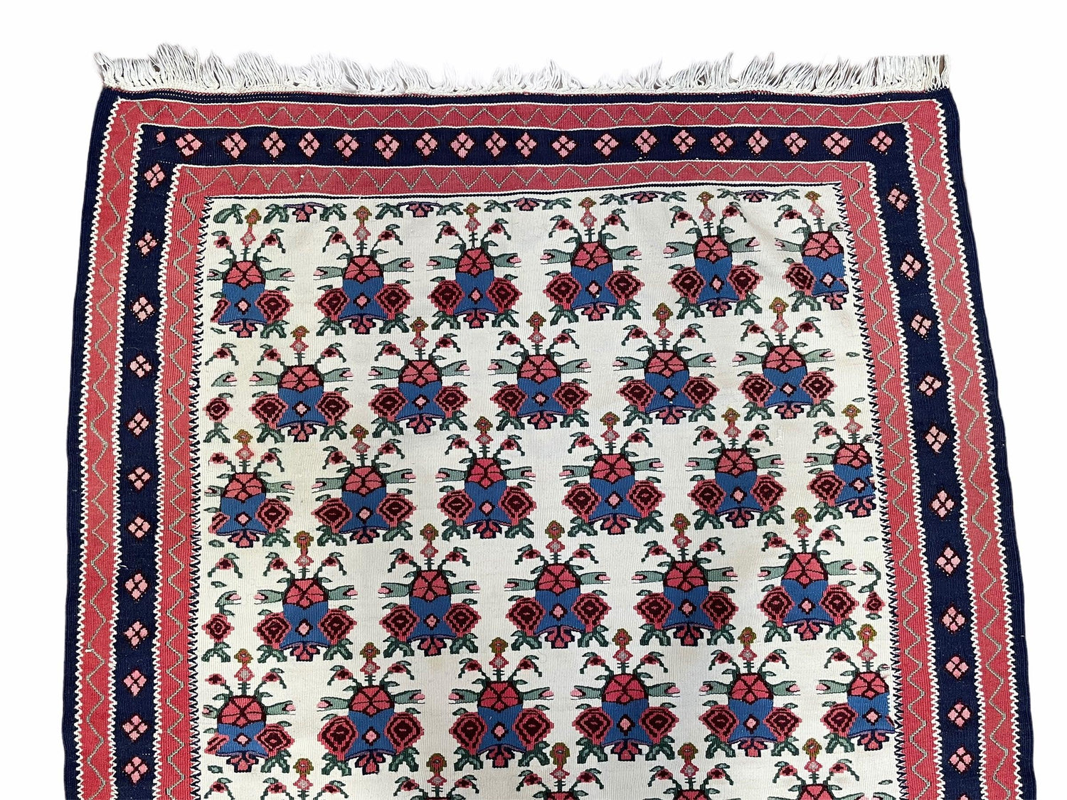 | Condition/Notes | A beautiful vintage Kilim rug. Vivid colors. Great condition considering age. Recently professionally cleaned and ready to be enjoyed in your space. |