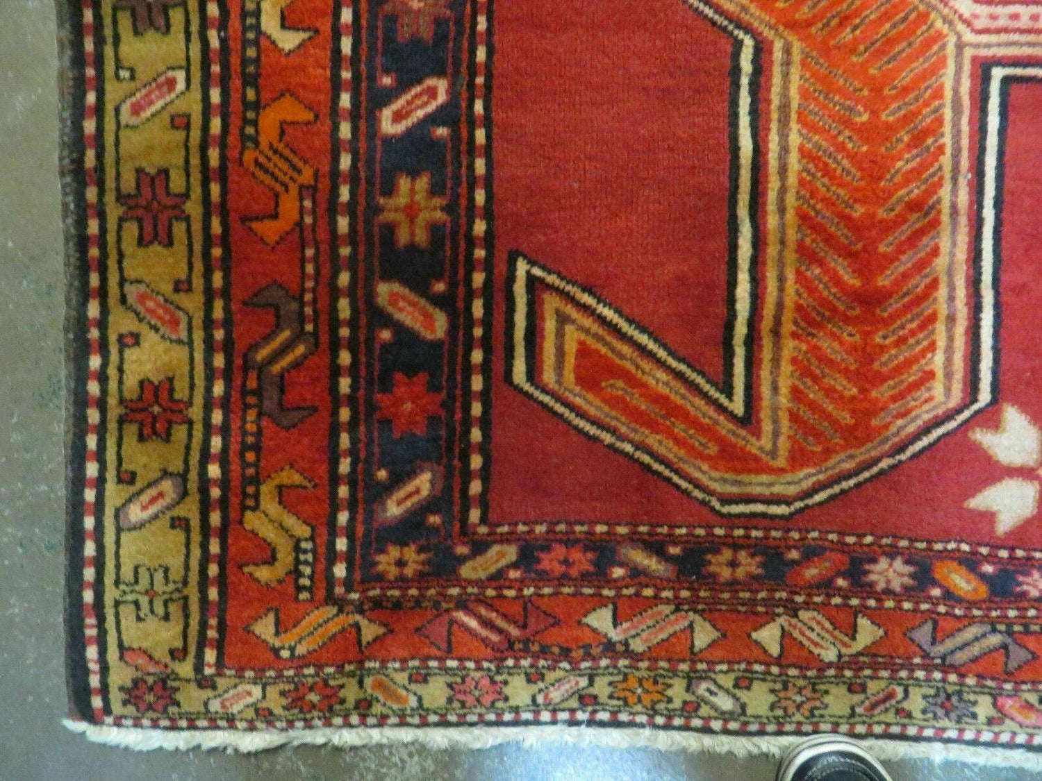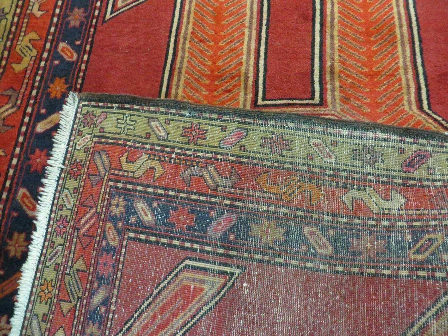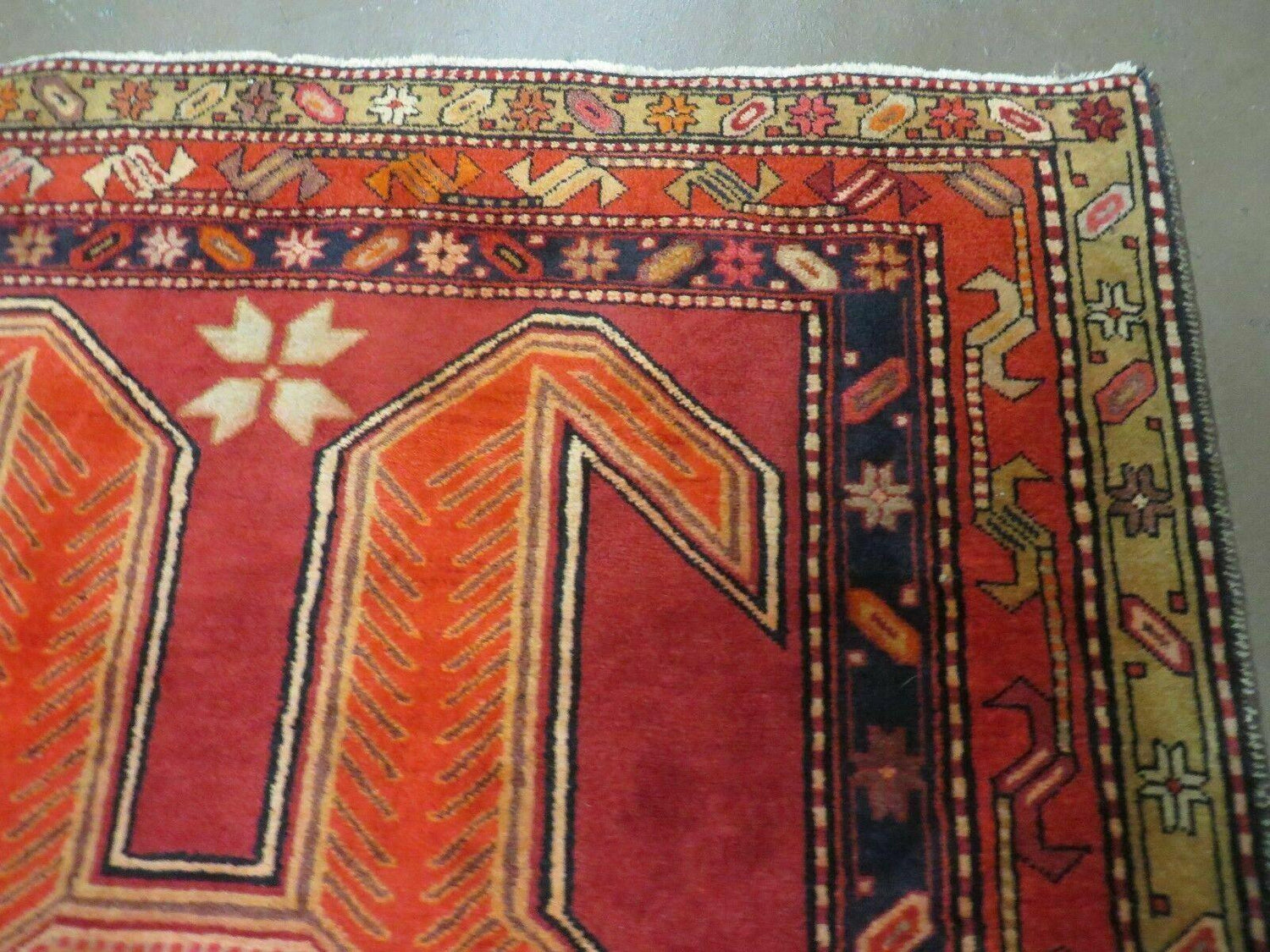 USED 4' 10" X 11' Antique Handmade Turkish Kazak Wool Rug SHIELD Hand Knotted Red