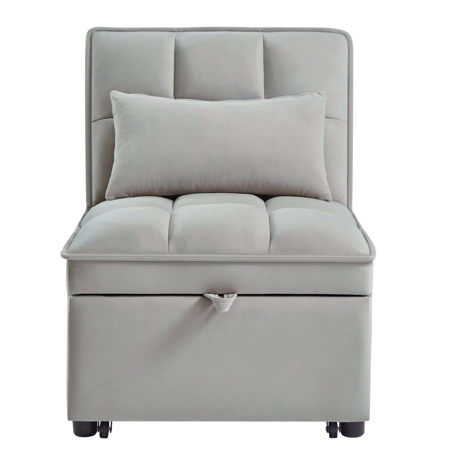 NEW 4 in 1 Multi-Function Grey Tufted Single Convertible Chaise Lounge Pull-Out Sofa Bed with Storage Pockets with Adjustable Backrest and Pillows