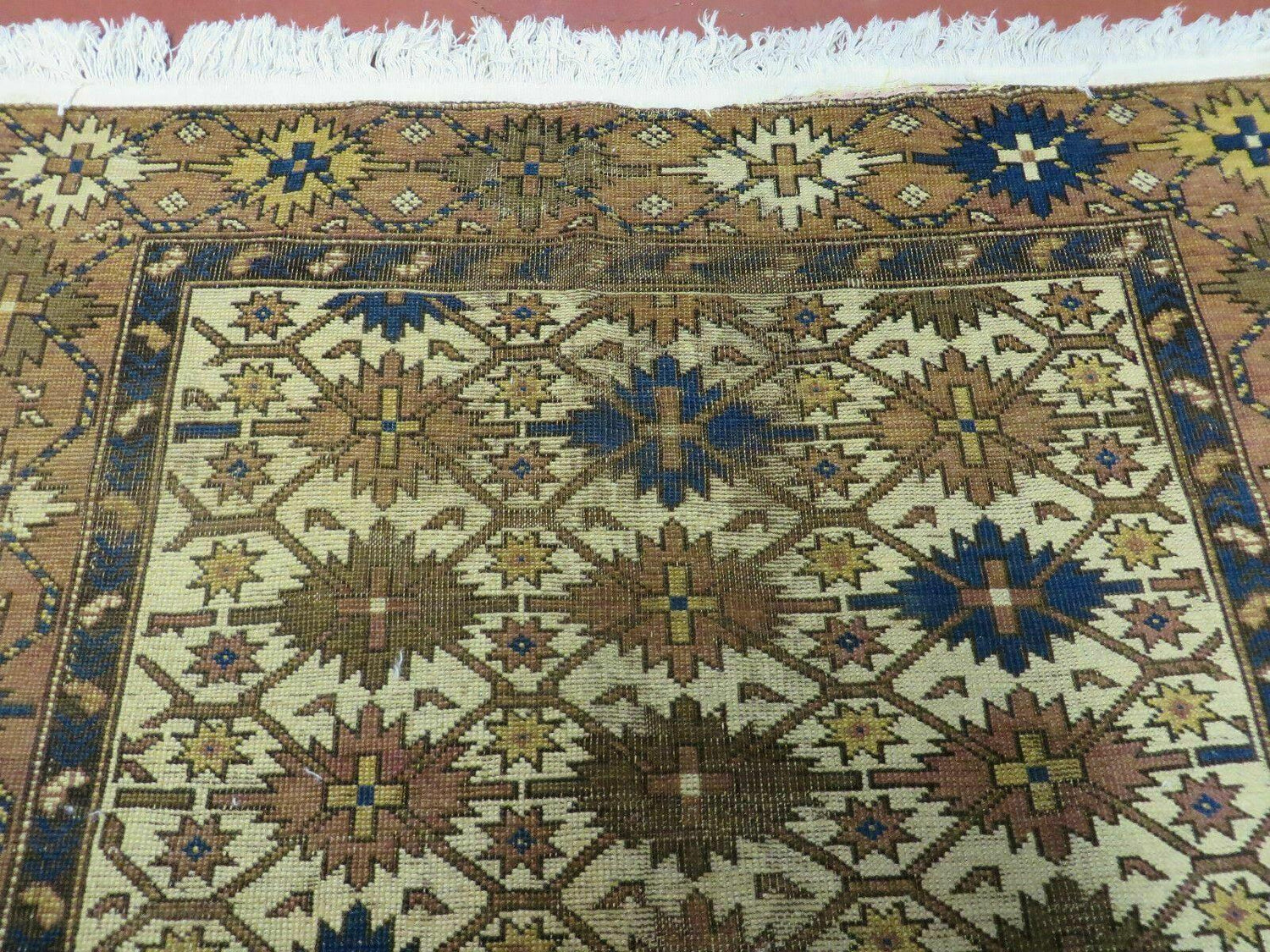 USED 4' X 5' Antique Handmade Caucasian Kazak Shirvan Wool Rug Snow Flakes