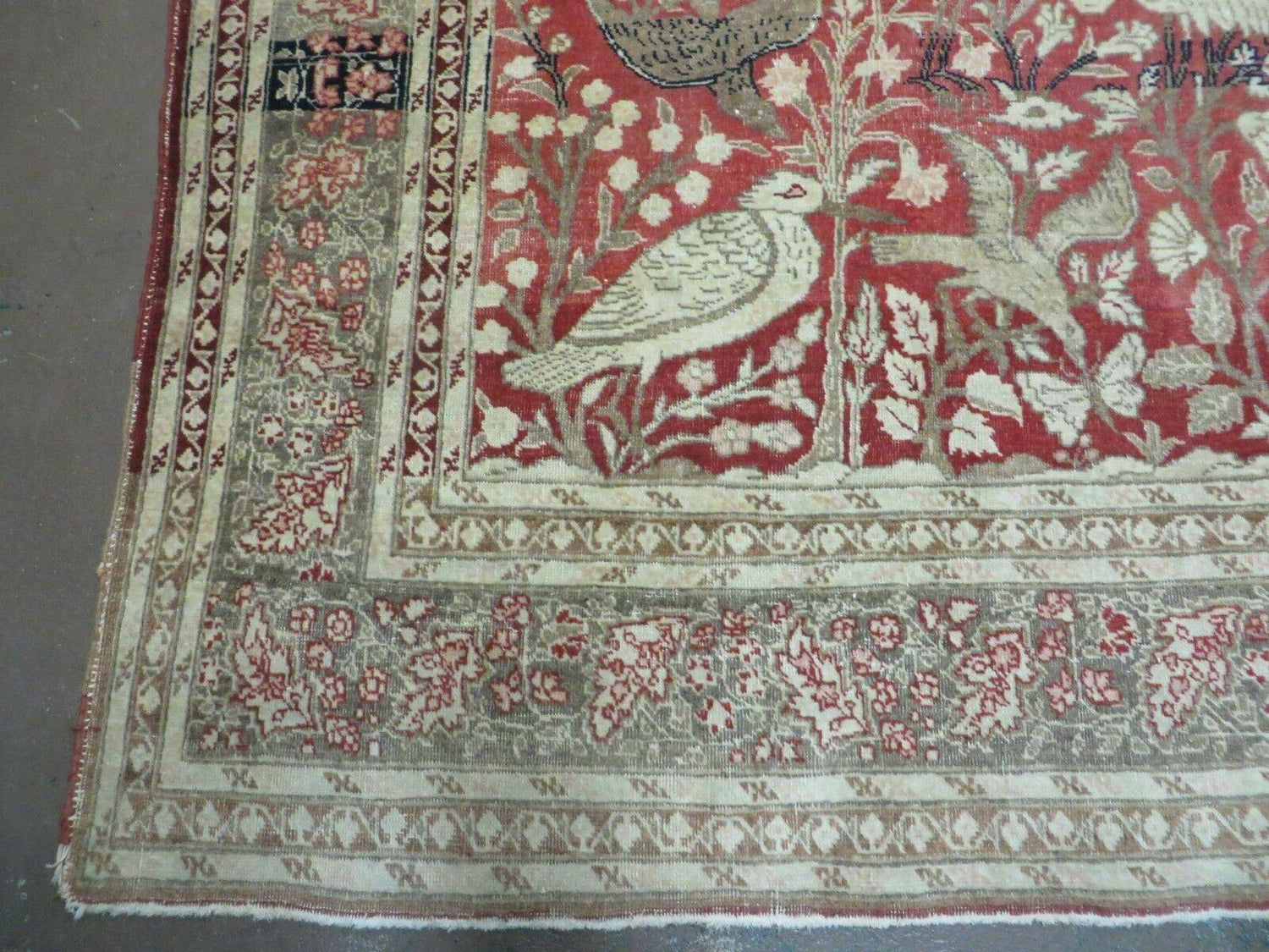 USED 4' X 6' Antique Handmade Turkish Tree Of Life Oriental Wool Rug Birds Red