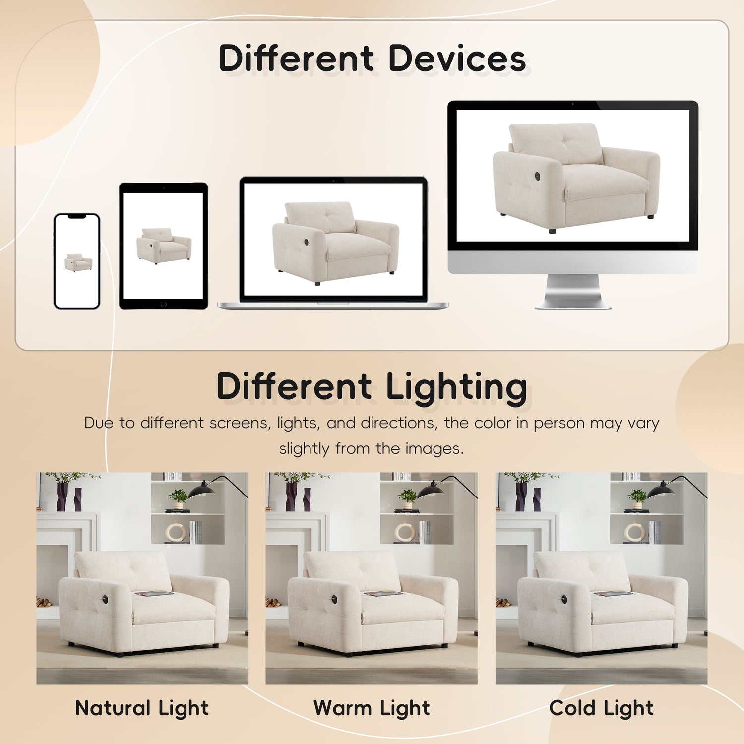 NEW 42*33' Single Sofa, Armchair with Wide Seat, Dual-port Charger, Pull-line & Tufted Design, High-density Foam, Suitable for Living Room & Apartment, Chenille, 2 Colors