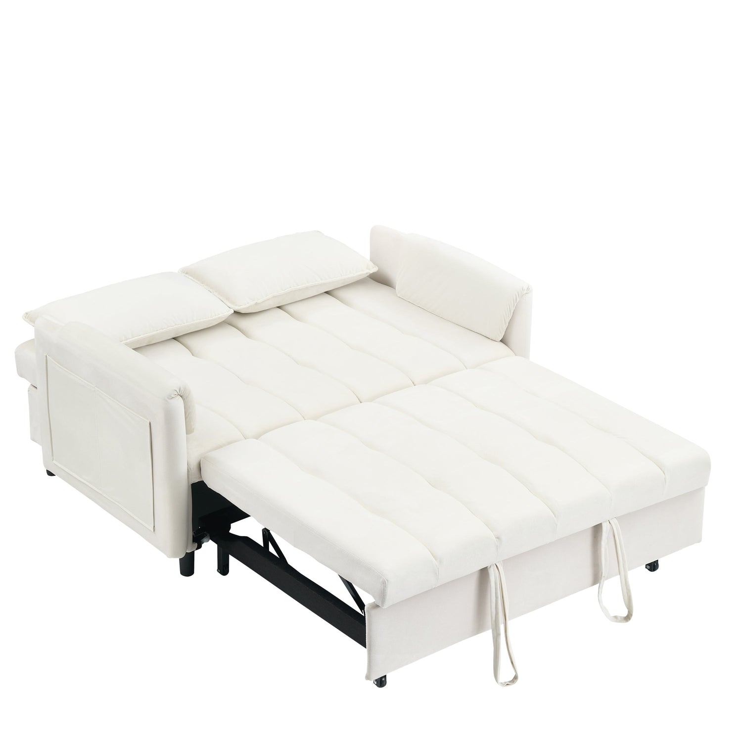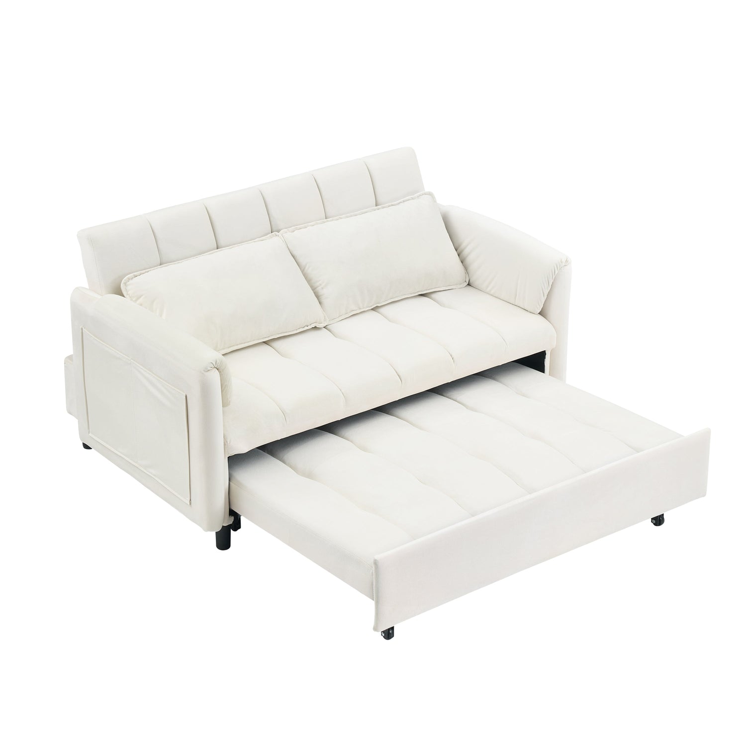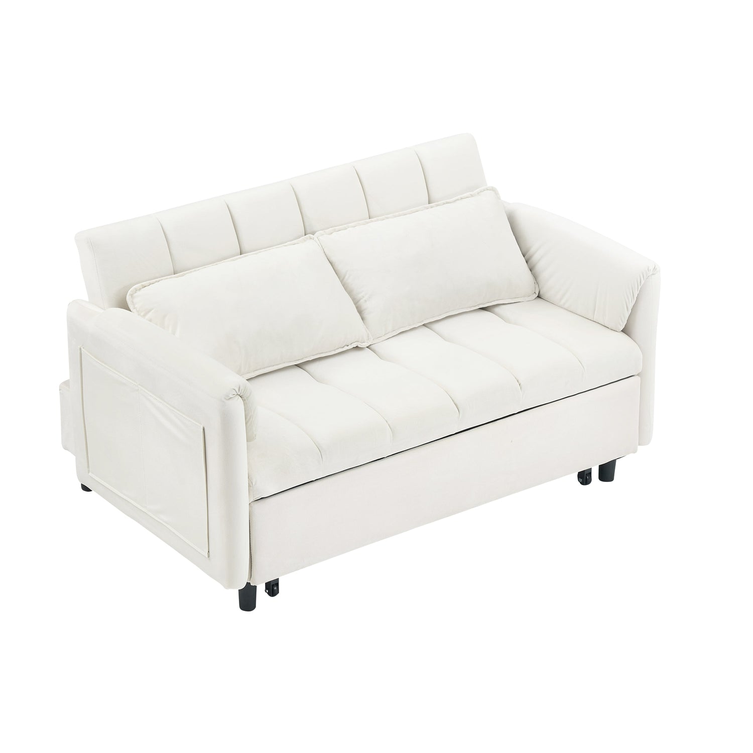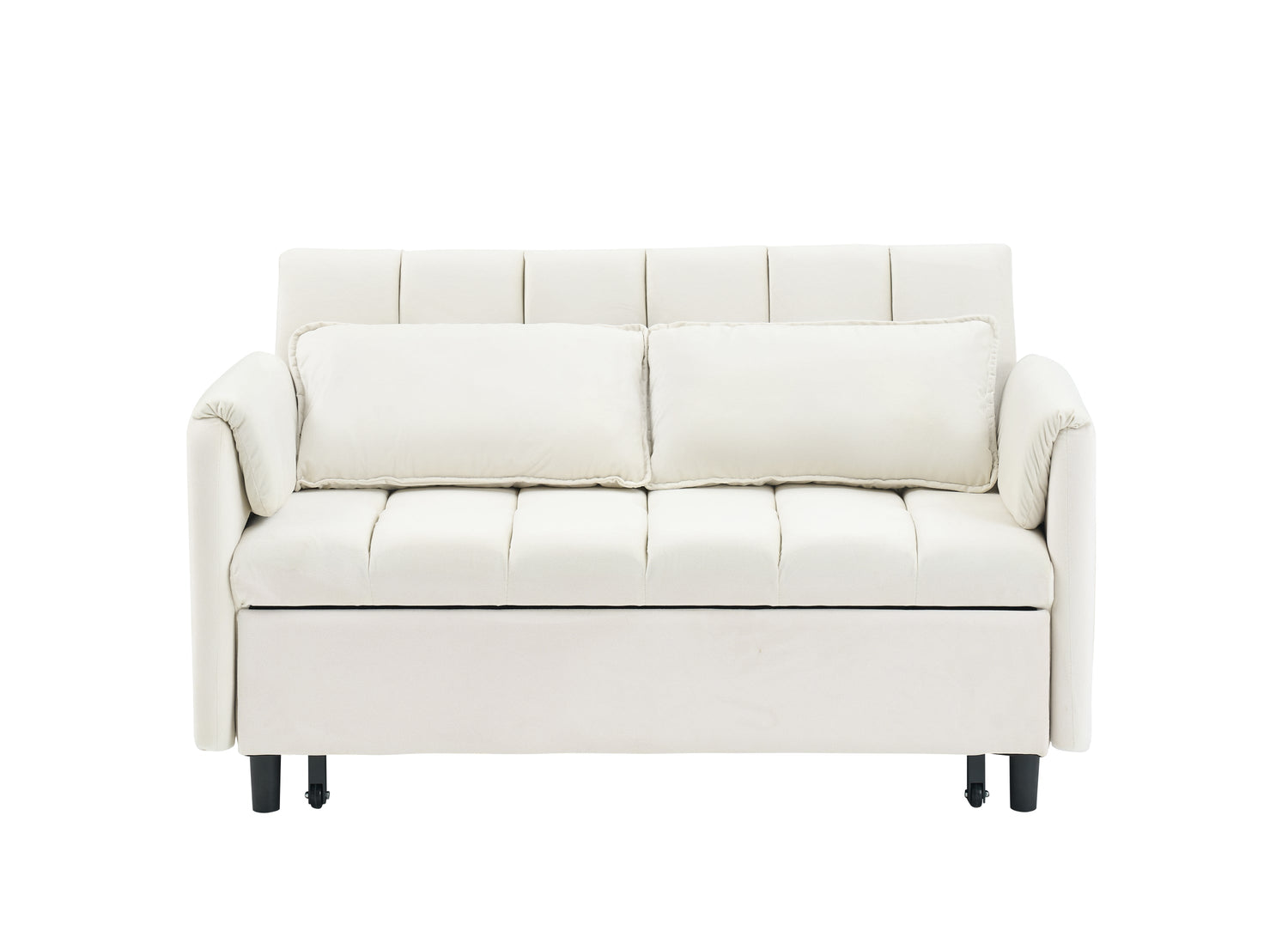 NEW 52 Beige Modern Velvet Sofa Pullout Bed Small Loveseat Casual Sofa with Pillow Pockets