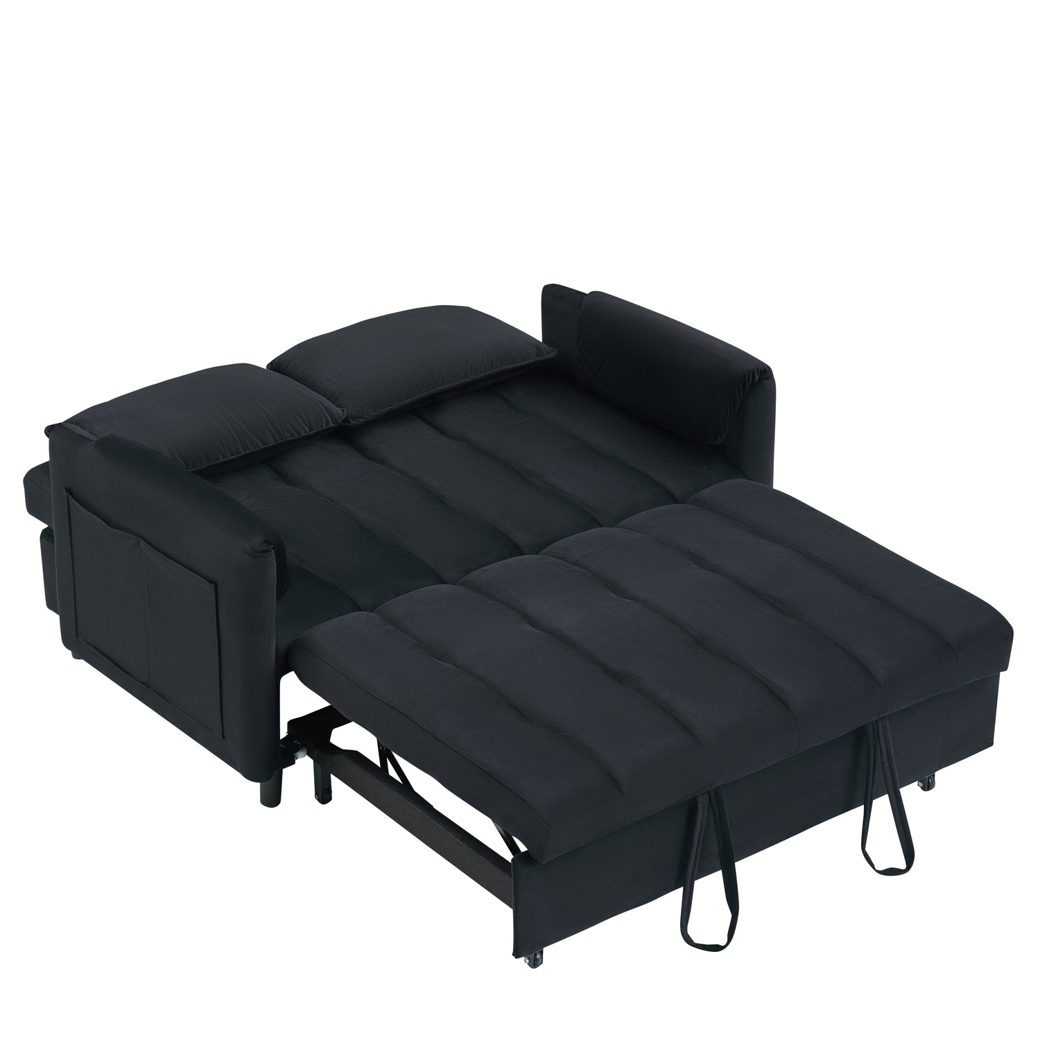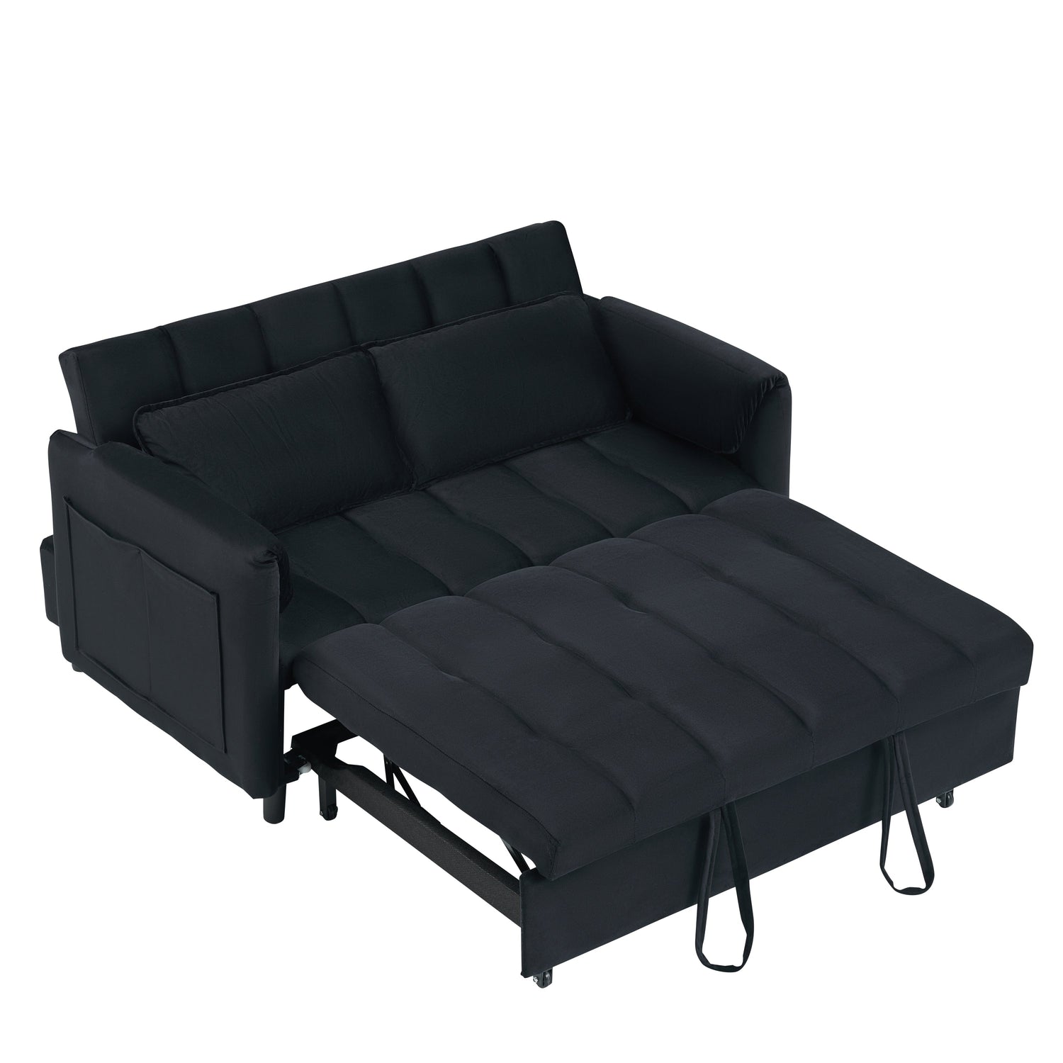 NEW 52' Black modern velvet pull-out bed, small love seat