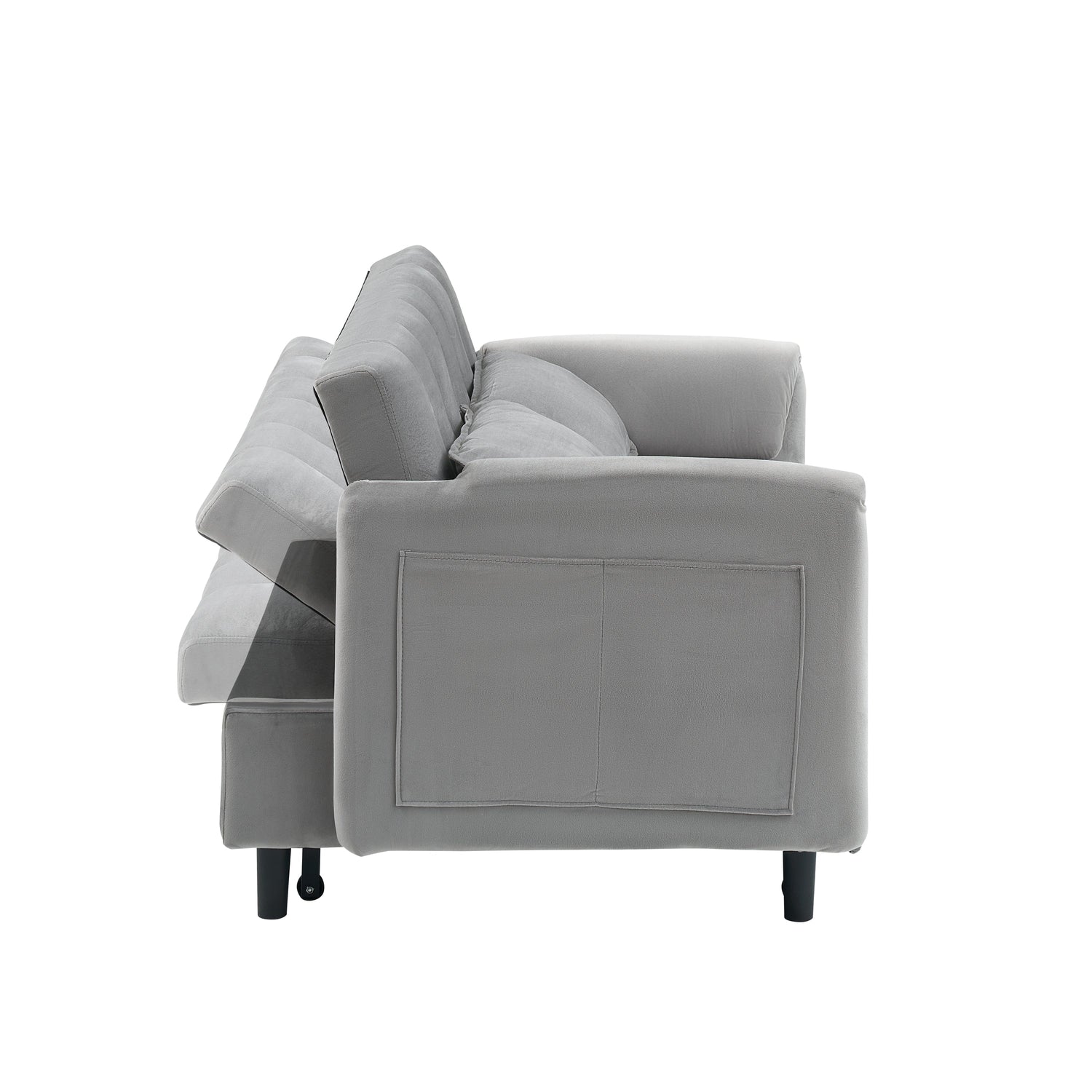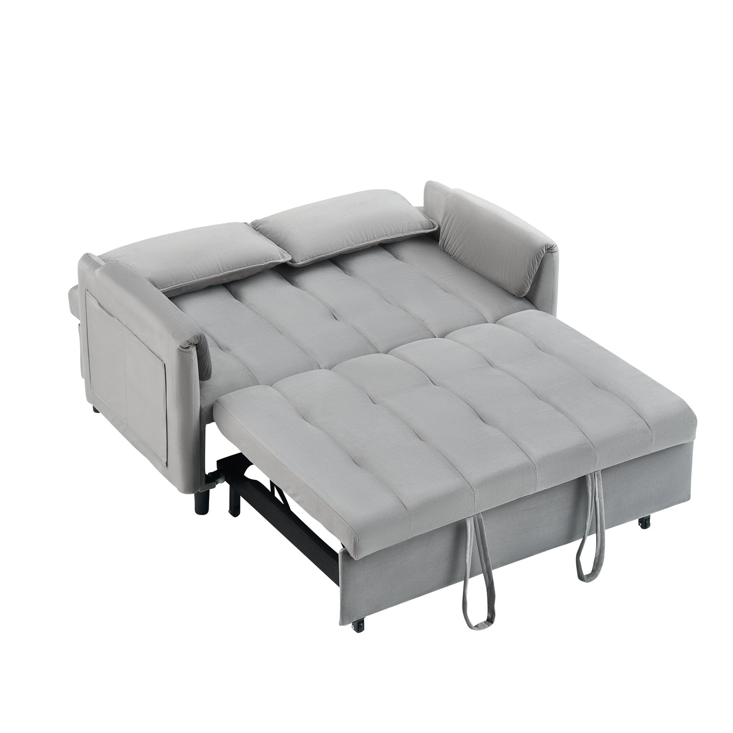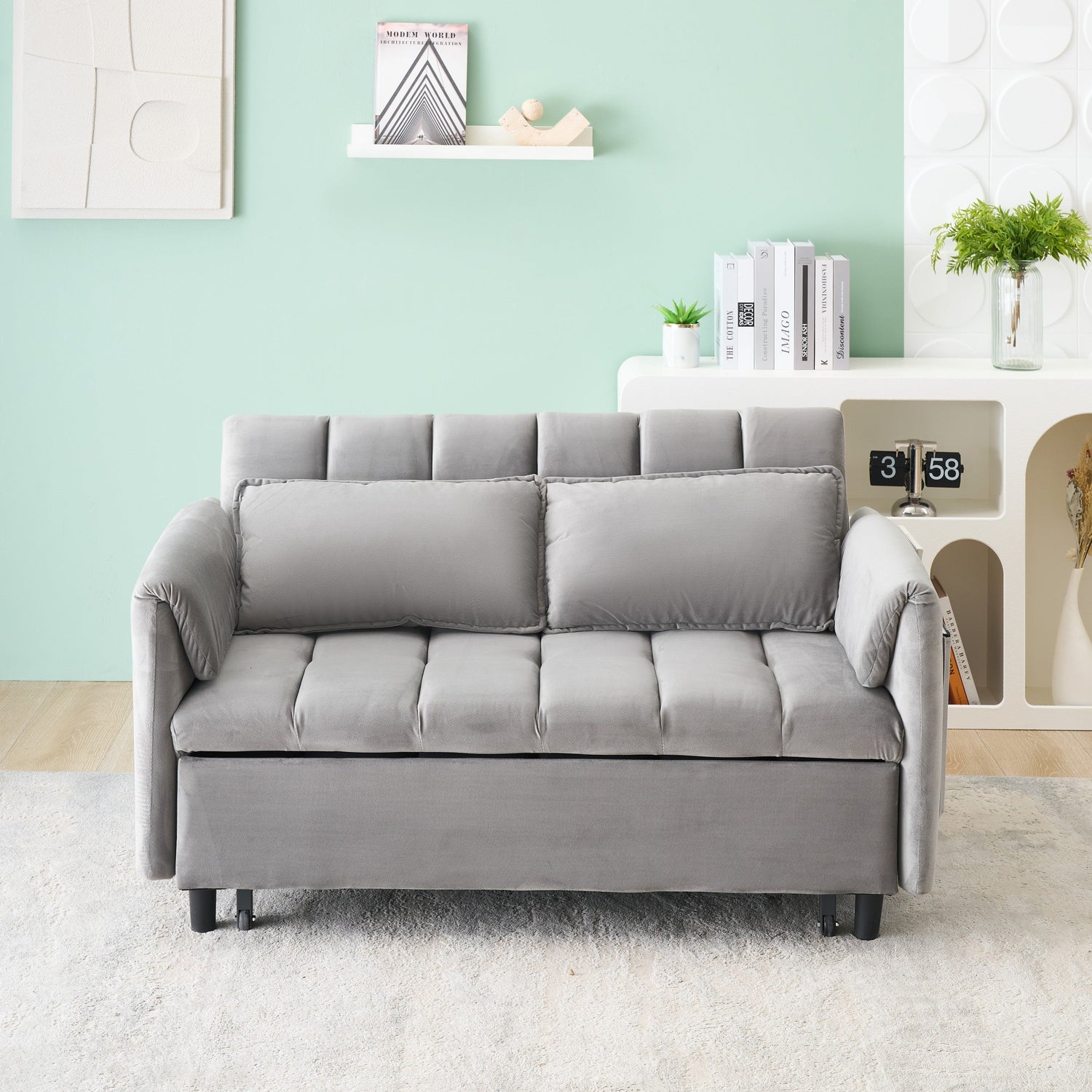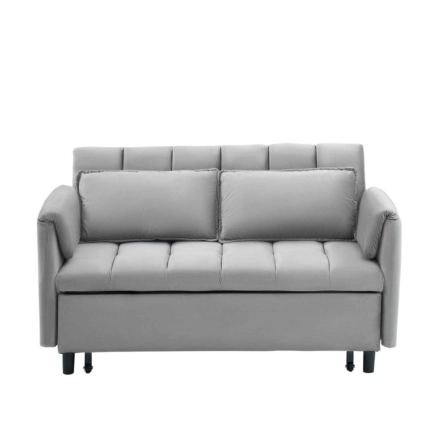NEW 52 'grey modern velvet sofa, sofa pullout bed, small love seat casual sofa with back, pillow, pockets, living room furniture, 3 in 1 convertible sleep sofa bed.