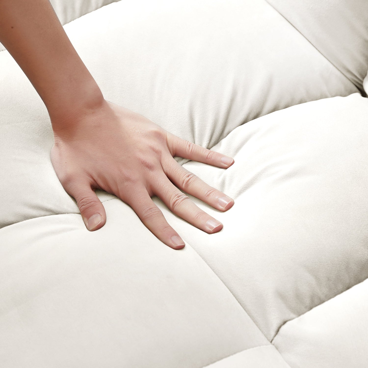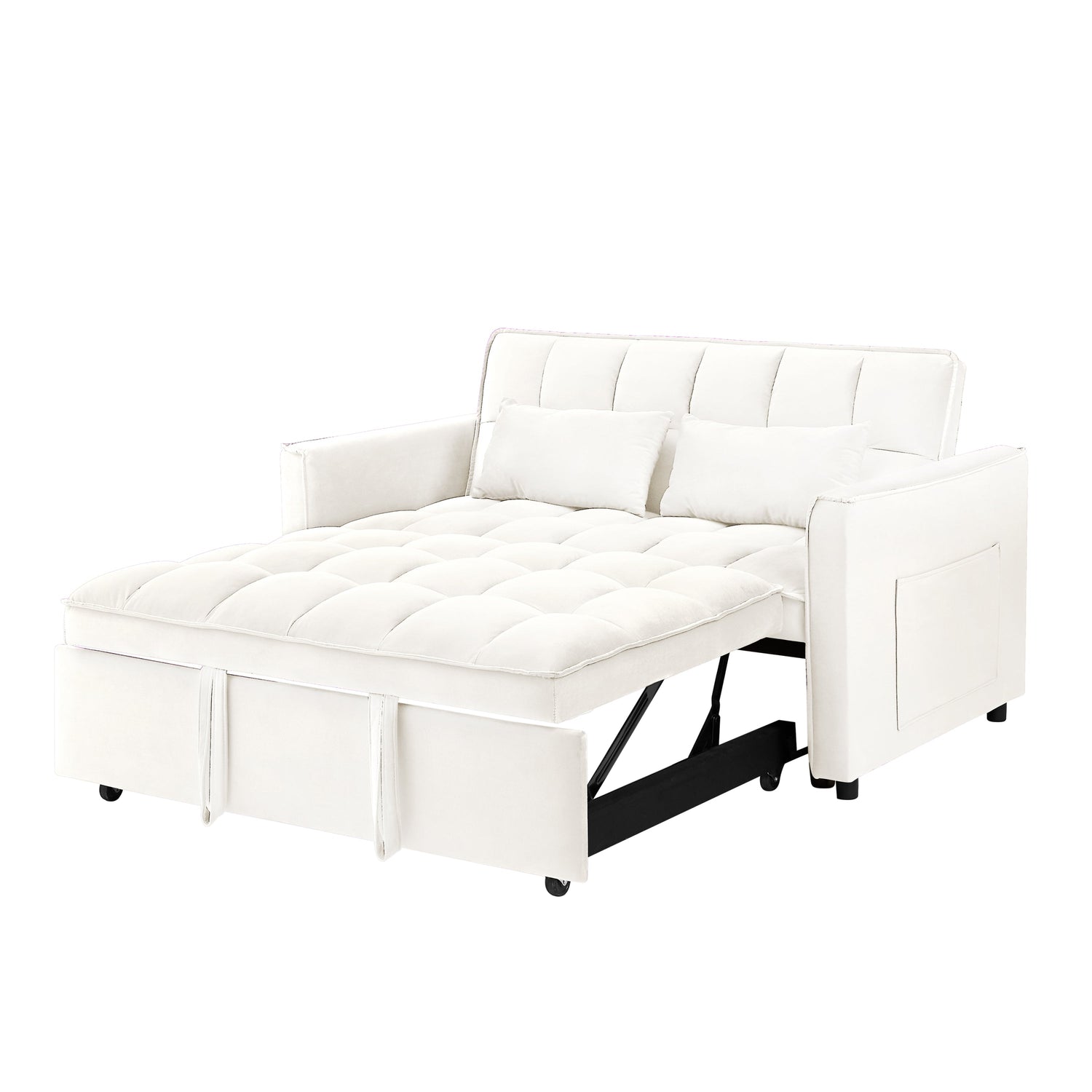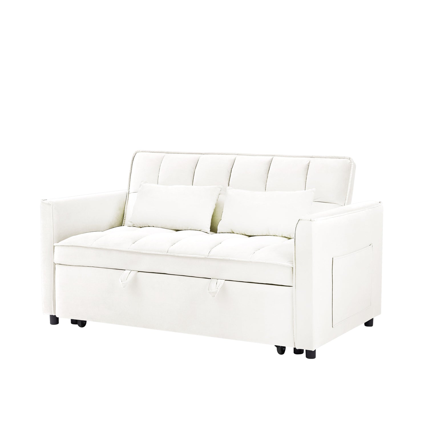 NEW 55.1-inch 3-in-1 Off White Convertible Modern Velvet Double Sofa Futon Bed with Adjustable Back Storage Bag and Pillow