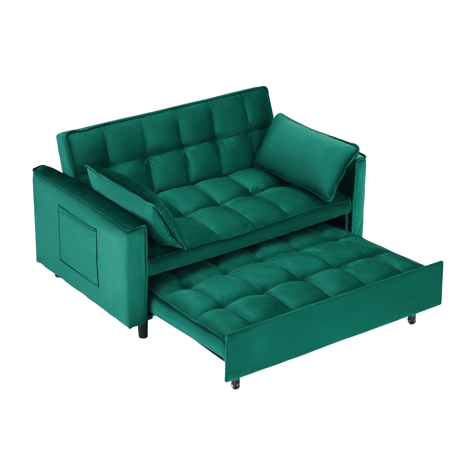 NEW 55-inch Green velvet sofa bed, elegant and convenient, with storage pockets, cleverly interpreting the three-in-one conversion