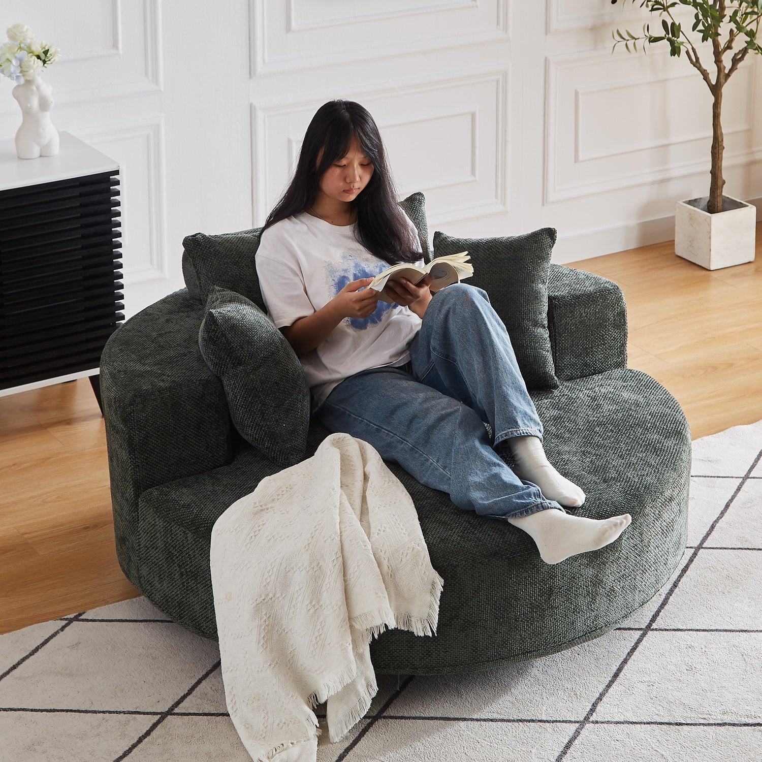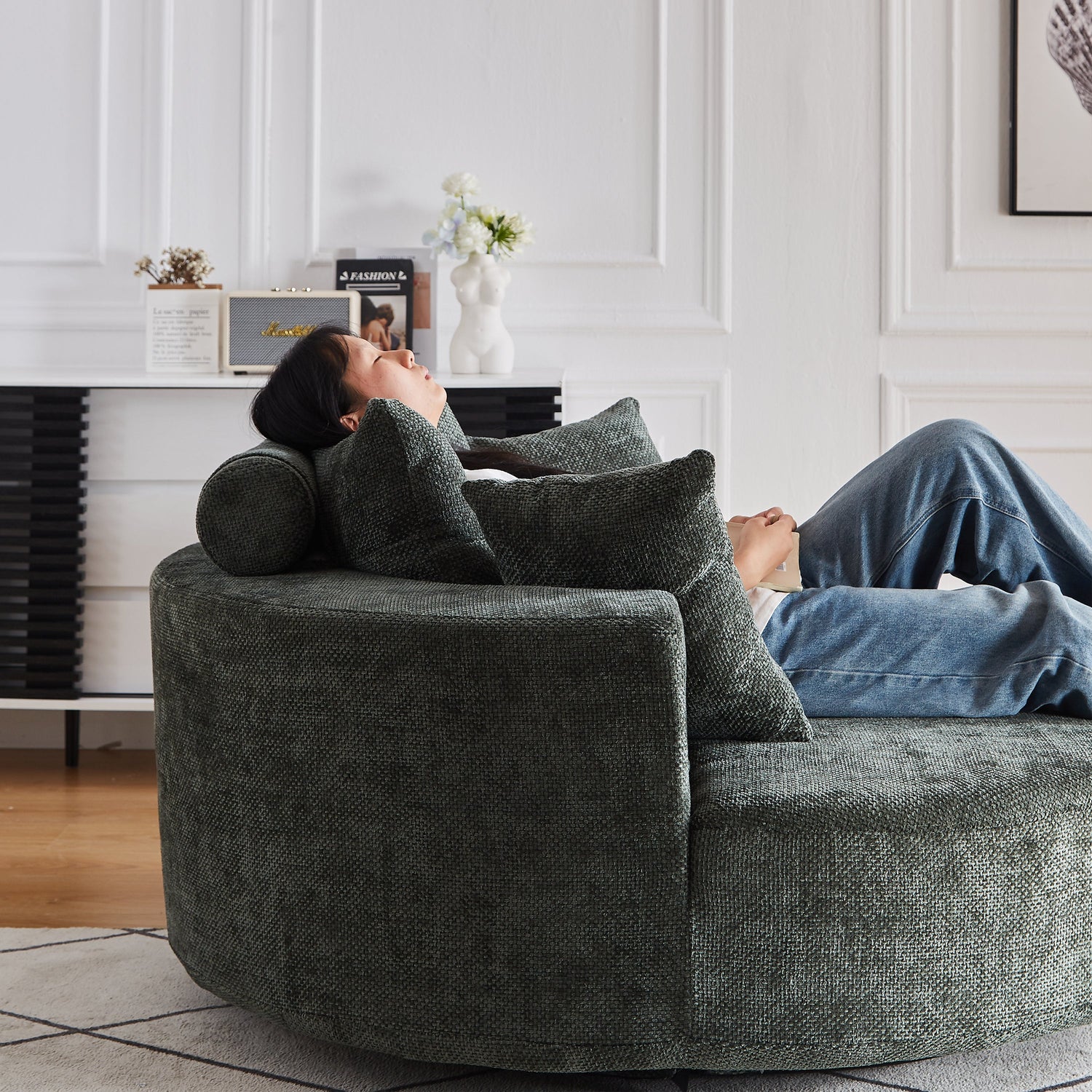 NEW 55''L Chenille Foam Single Swivel Chair, Fluffy Modern Sleeper, 360 Degree Swivel Chair for Living Room, Bedroom, Lounge and Projection Room