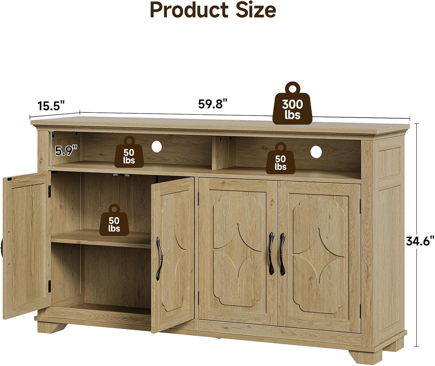 NEW 60 Inch Sideboard Buffet Cabinet With Open Storage