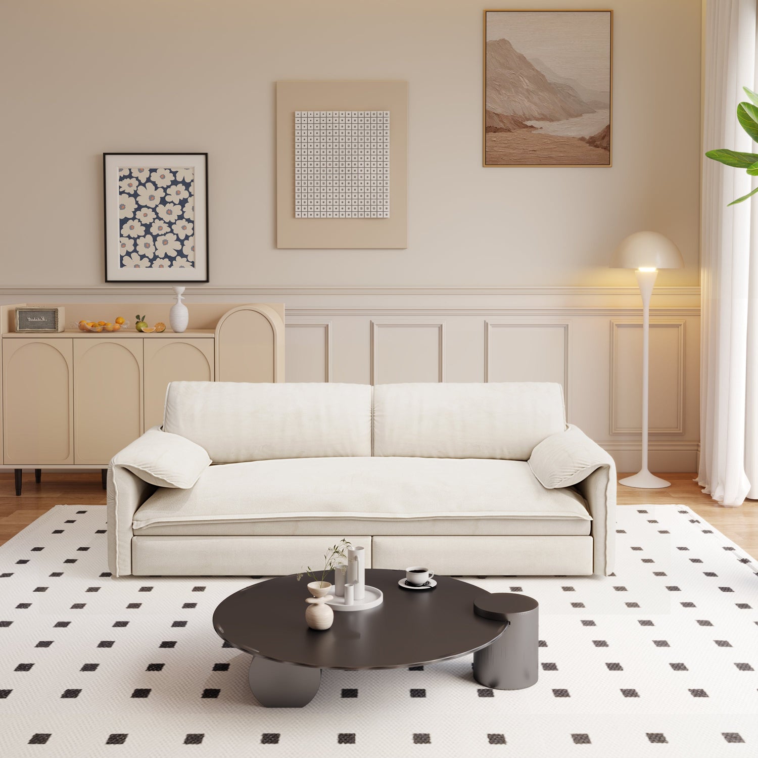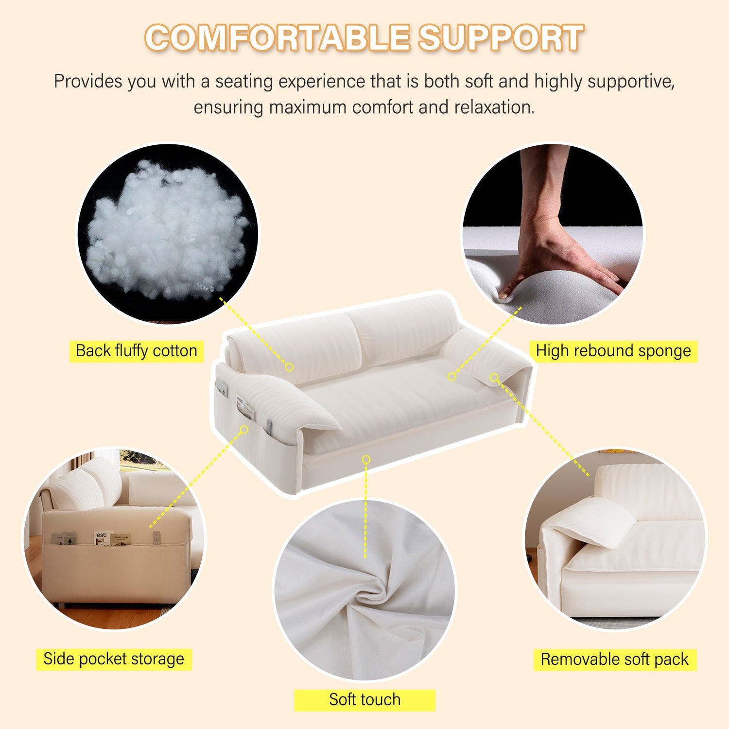 - With Storage: The side of the sofa is equipped with a fixed storage bag for convenient storage of TV remote controls, mobile phones, glasses, books, etc.