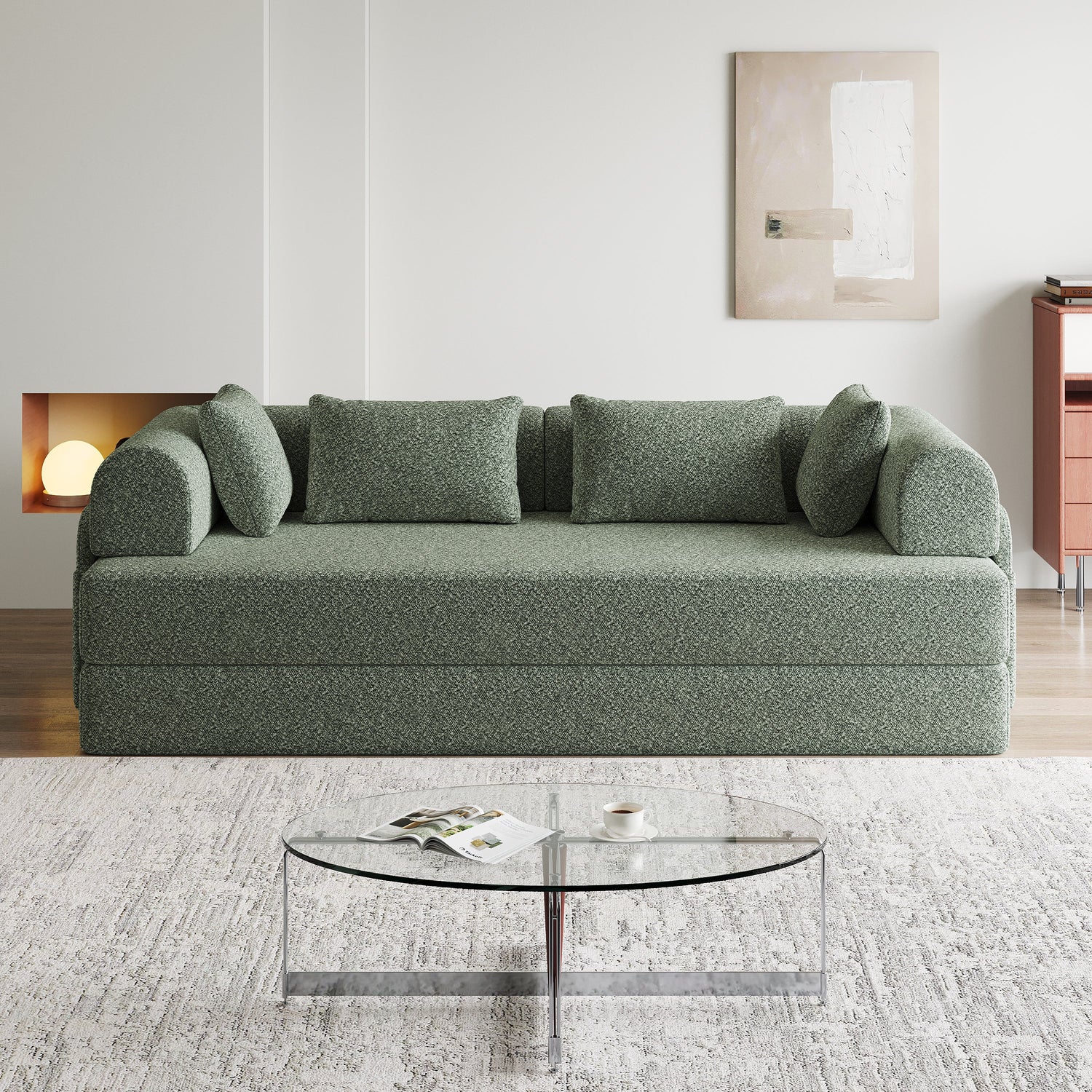 NEW 78.7-Inch Convertible Sleeper Couch Sofa Bed with Cylindrical Pillow Folding Mattress with Side Pocket
