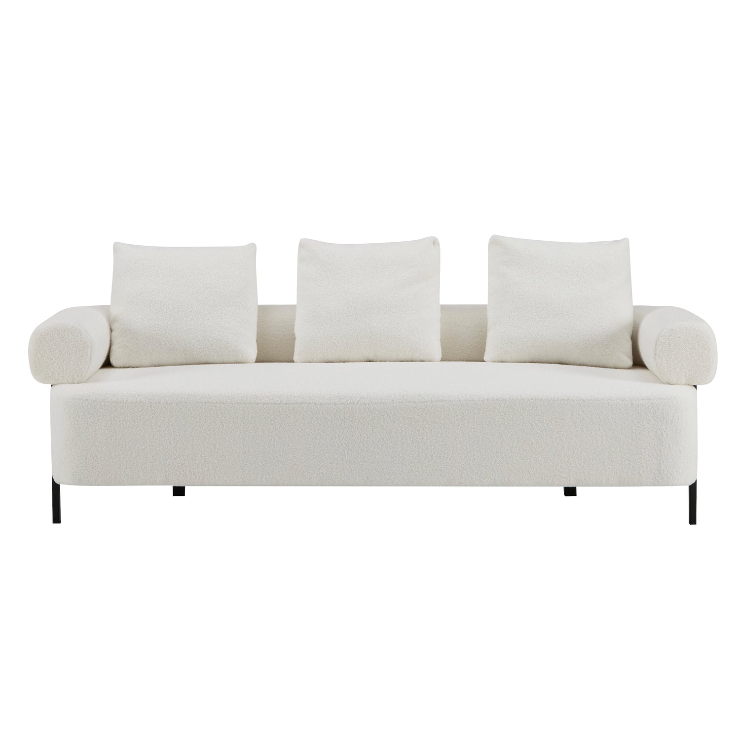 - Premium Upholstery & Durability:Crafted with high-quality, soft upholstery fabric in a stylish cream white hue, the sofa is not only cozy to the touch but also built to last. The sturdy frame and metal legs ensure long-term stability and can support a substantial weight capacity.