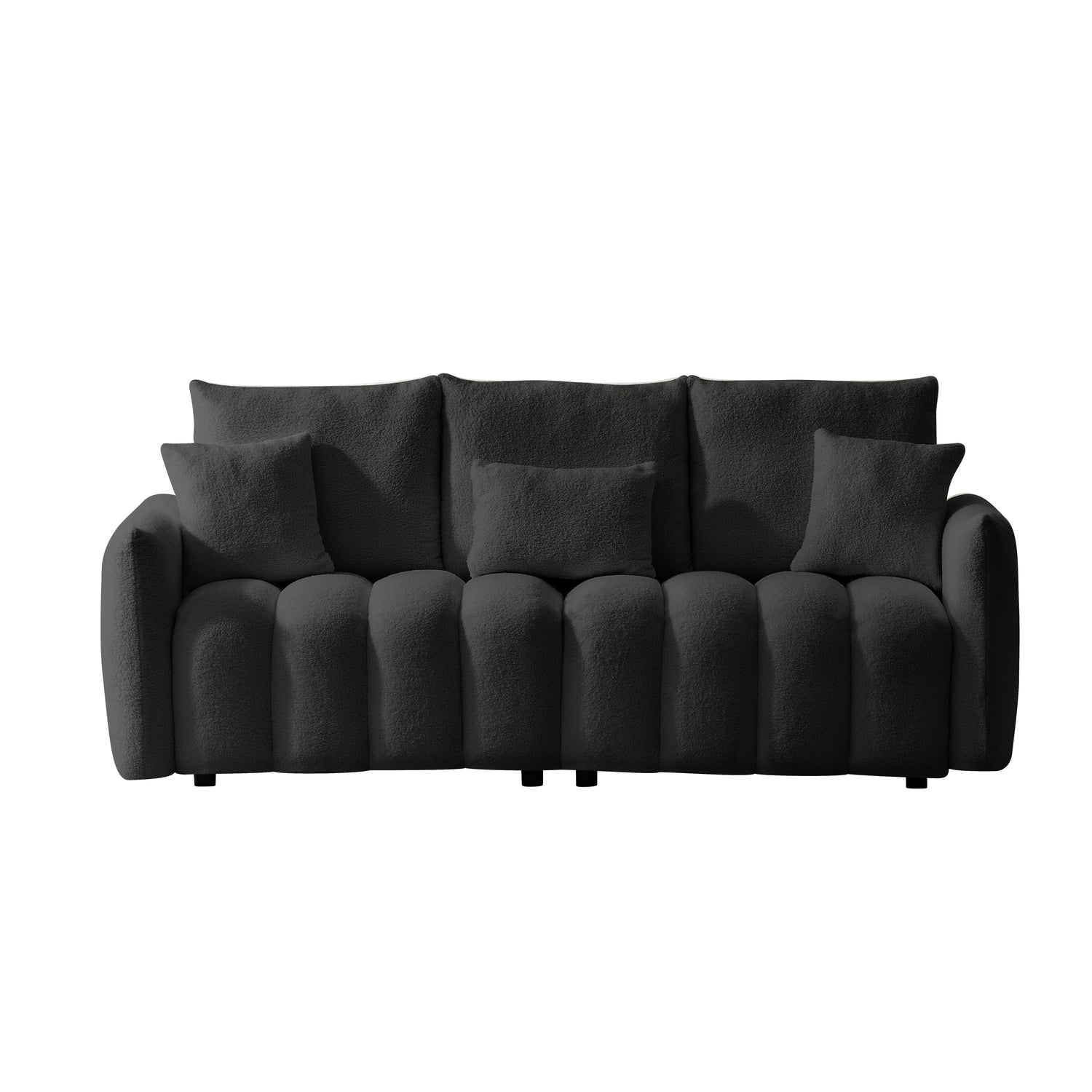 NEW 80.7 inch Premium Teddy Fabric Solid Wood Frame 3 Seat Oversized Upholstered Chair Sofa with 3 Back Pillows and 3 Back Cushions