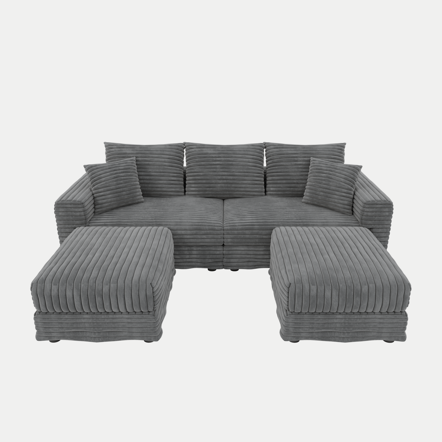 82.7 ' Plush Corduroy 3-Seat Sofa, Modern Comfy Upholstered Sofa Cloud Couch, Deep Seat Couches with Soft Pillows and 2 Ottomans, Convertible Sofa Lounge Chair, for Living Room,Apartment,Office,Grey