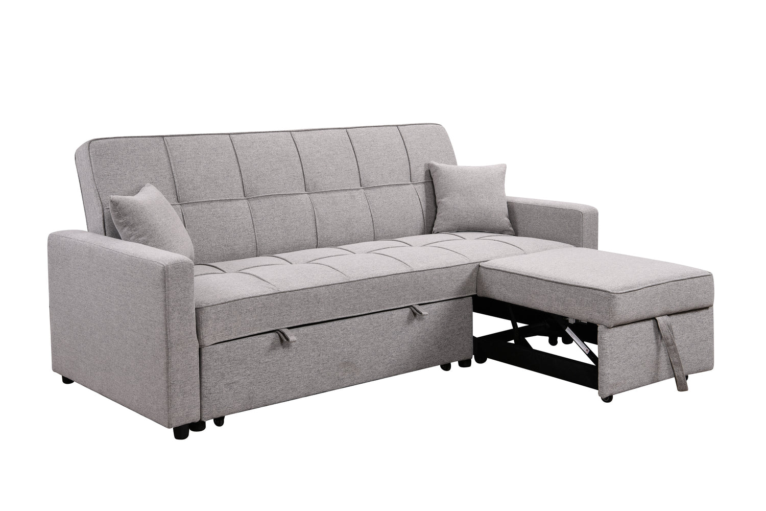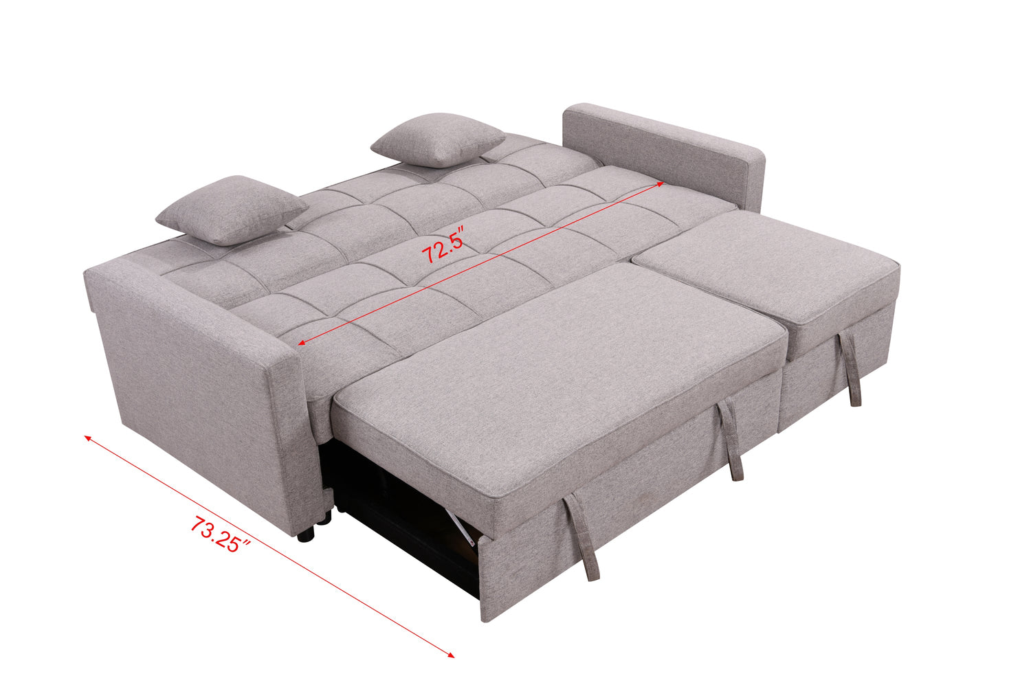 NEW 83' Light Gray 3 Seater Convertible Sofabed Oversized Upholstered Sofa Bed with Pull Out Couch Bed & Adjustable Backrest
