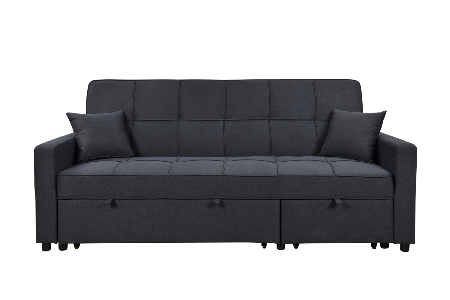 - CONVERTIBLE PULL-OUT SOFA BED:This sofa is equipped with 2 pull-out bed, which all can be pulled out with 2 auxiliary hand straps to easily and quickly convert the loveseat into a chaise longue or a sleeping bed. Not only can it meet your needs for watching TV, playing games, or taking a break, but it can also provide a place to stay for overnight friends. It is very practical for a limited small space.
