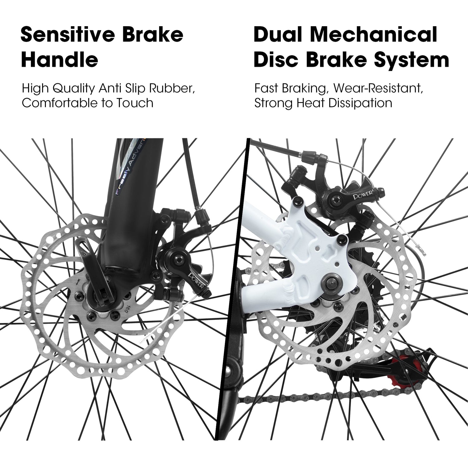 - 【Brake&Shifter】Front and rear disc brakes ensure timely and effective braking,provide you better durability and stopping power for your rugged and damp adventures.The 21-speed drivetrain with Shimano shifters and Trigger Shifter allows you to find the most comfortable and efficient gear for the kind of road.