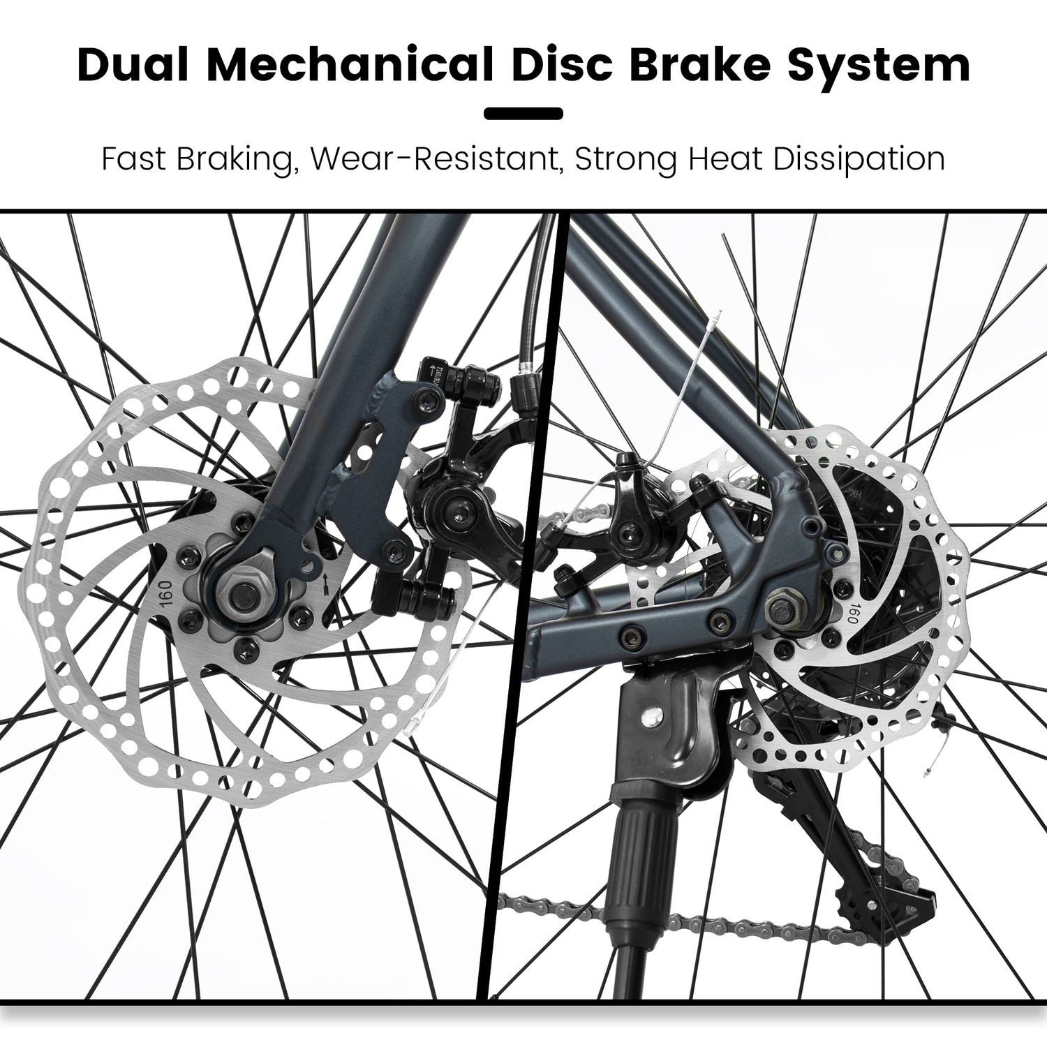 - 【Efficient Disc Brakes for Reliable Stopping Power】 Equipped with powerful disc brakes, the bike offers precise and dependable braking performance, ensuring safety and control on all terrains.