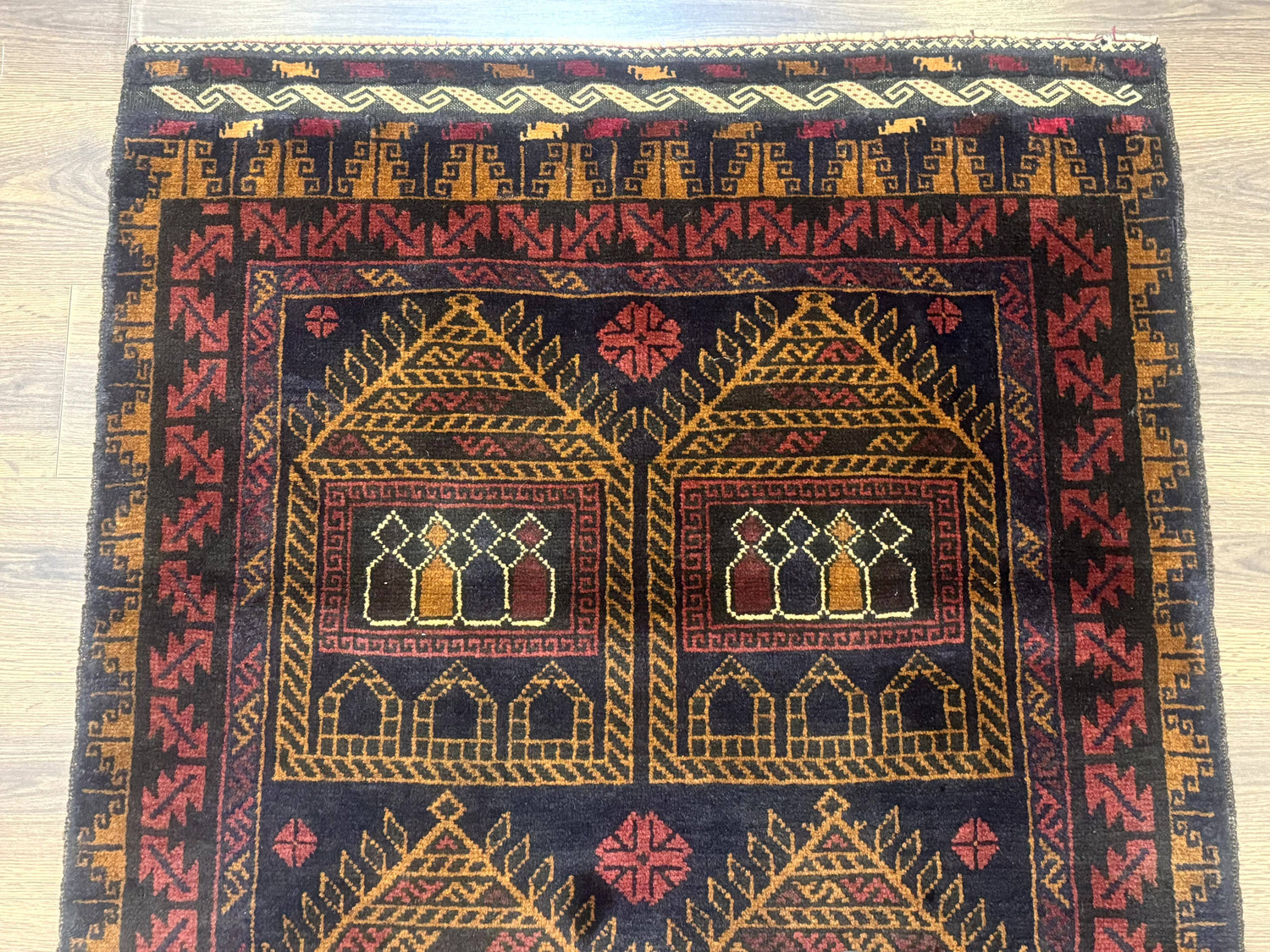 NEW Afghan Rug 3x7, Navy Blue, Tribal Rug, Balouch Carpet
