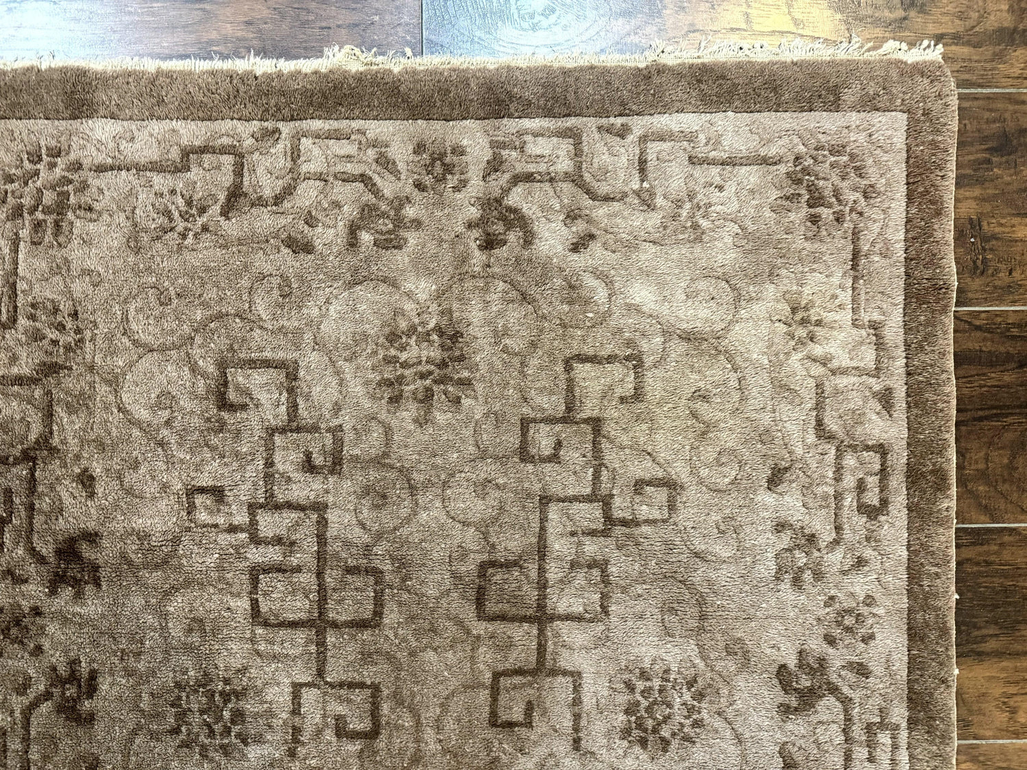 USED Antique Chinese Fette Rug 3x6, Taupe, Handmade Wool Chinese Carpet