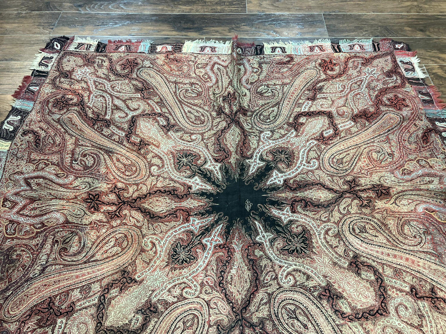 USED Antique Indian Kashmiri Shawl, Needlework, Signed By Masterweaver, Handmade, Rare